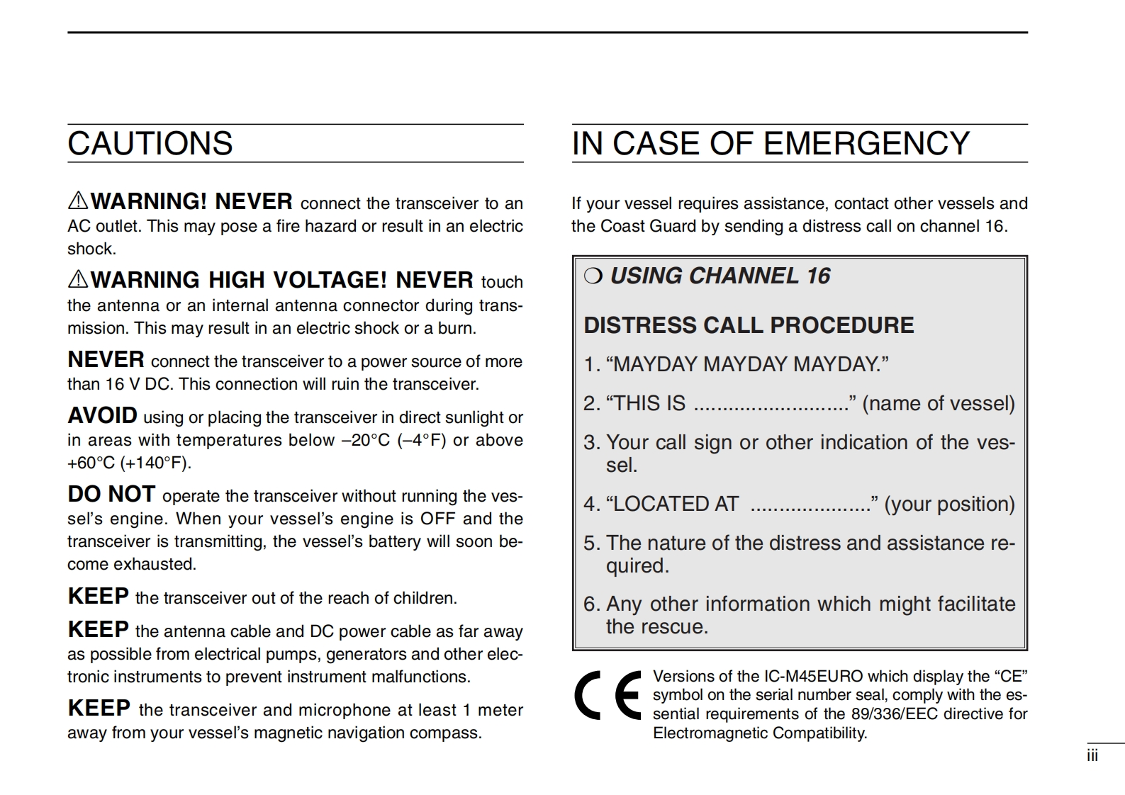 IC-M45EURO_Manual操作说明书手册找手册网31天前发布关注私信0.62MB24页038IC-M45EURO_Manual操作说明书手册此内容为付费资源,请付费后查看¥19¥21黄金会员免费钻石会员免费登录购买付费资源 第1页 / 共24页 第2页 / 共24页 第3页 / 共24页 第4页 / 共24页 第5页 / 共24页 第6页 / 共24页 第7页 / 共24页 第8页 / 共24页 第9页 / 共24页 第10页 / 共24页 试读已结束,还剩14页,您可下载完整版后进行离线阅读 THE END艾可慕 文本预览 COMINSTRUCTION MANUALVHF MARINE TRANSCEIVERIC-M45EUROIcom Inc. 查看更多 收起部分 喜欢就支持一下吧收藏