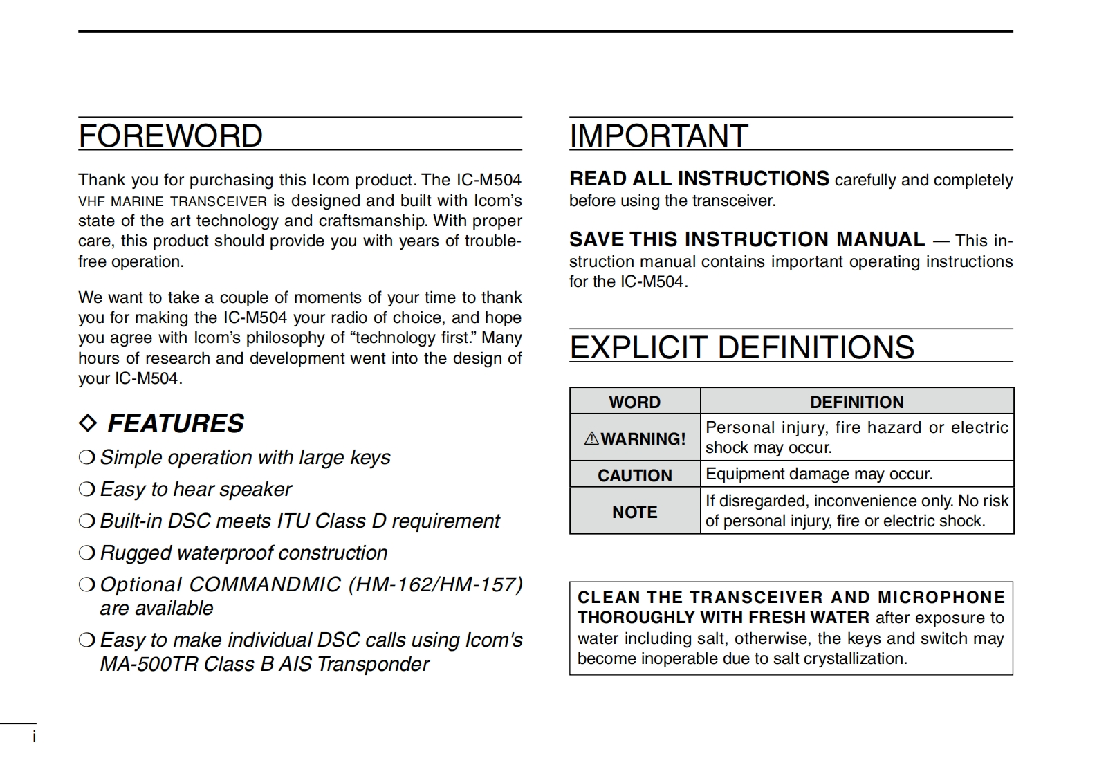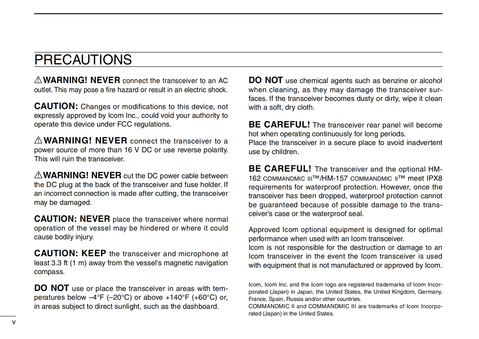 IC-M504-Instruction-manual操作说明书手册找手册网31天前发布关注私信8.22MB81页039IC-M504-Instruction-manual操作说明书手册此内容为付费资源,请付费后查看¥19¥21黄金会员免费钻石会员免费登录购买付费资源 第1页 / 共81页 第2页 / 共81页 第3页 / 共81页 第4页 / 共81页 第5页 / 共81页 第6页 / 共81页 第7页 / 共81页 第8页 / 共81页 第9页 / 共81页 第10页 / 共81页 试读已结束,还剩71页,您可下载完整版后进行离线阅读 THE END艾可慕 文本预览 COMINSTRUCTION MANUALVHF MARINE TRANSCEIVERTCOMVHF MARINE IC-M504C-M50425wUTAG6:16Local 12:05 CALLINGDUAL16gENTERIcom Inc. 查看更多 收起部分 喜欢就支持一下吧收藏