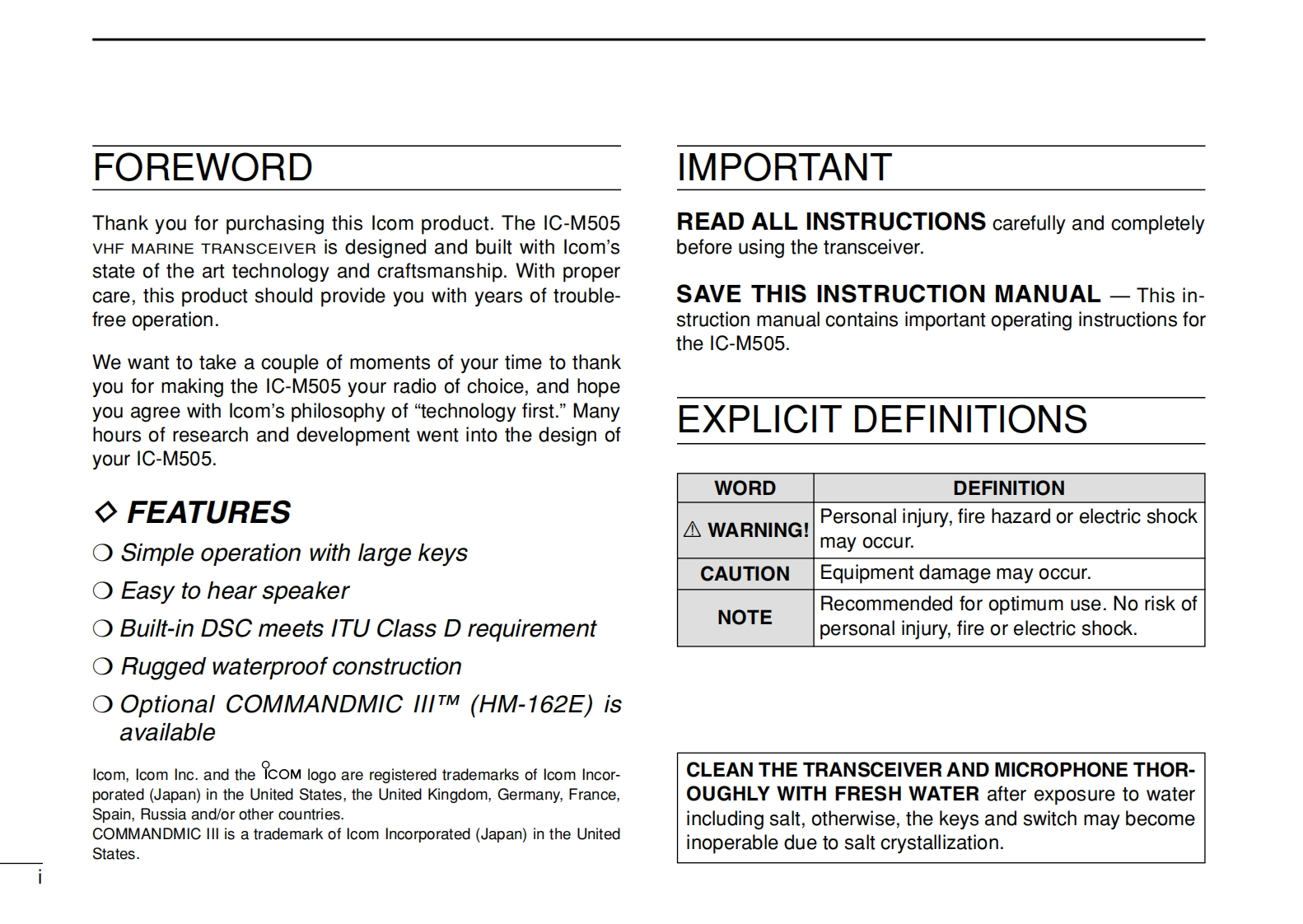 IC-M505-Instruction-manual操作说明书手册找手册网32天前发布关注私信1.05MB80页050IC-M505-Instruction-manual操作说明书手册此内容为付费资源,请付费后查看¥19¥21黄金会员免费钻石会员免费登录购买付费资源 第1页 / 共80页 第2页 / 共80页 第3页 / 共80页 第4页 / 共80页 第5页 / 共80页 第6页 / 共80页 第7页 / 共80页 第8页 / 共80页 第9页 / 共80页 第10页 / 共80页 试读已结束,还剩70页,您可下载完整版后进行离线阅读 THE END艾可慕 文本预览 COMINSTRUCTION MANUALVHF MARINE TRANSCEIVERCOMVHF MARINE IC-MSOSIC-M50525W INTTAG16C10 8ByA有BROOEVOLSOLENTERIcom Inc. 查看更多 收起部分 喜欢就支持一下吧收藏