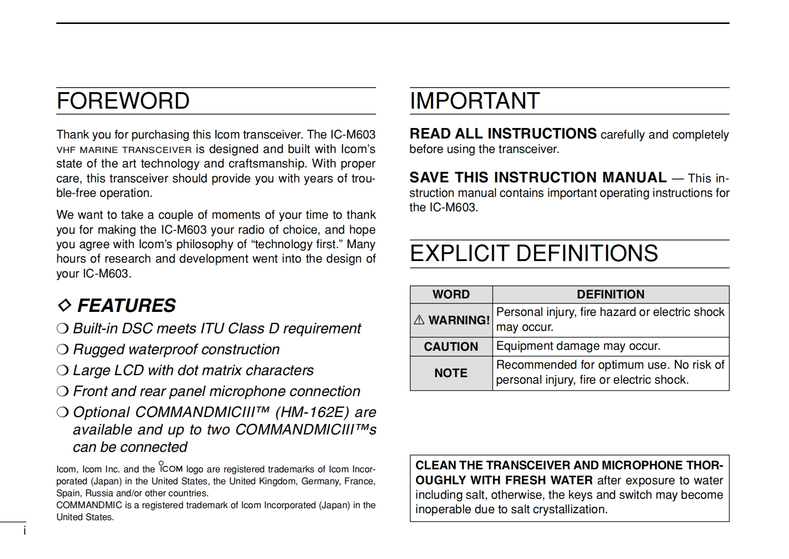 IC-M603_Manual操作说明书手册找手册网32天前发布关注私信0.95MB64页038IC-M603_Manual操作说明书手册此内容为付费资源,请付费后查看¥19¥21黄金会员免费钻石会员免费登录购买付费资源 第1页 / 共64页 第2页 / 共64页 第3页 / 共64页 第4页 / 共64页 第5页 / 共64页 第6页 / 共64页 第7页 / 共64页 第8页 / 共64页 第9页 / 共64页 第10页 / 共64页 试读已结束,还剩54页,您可下载完整版后进行离线阅读 THE END艾可慕 文本预览 COMINSTRUCTION MANUALVHF MARINE TRANSCEIVER1C-M603圆器留25W INT固圈巴6:16ALLINGCOM16Icom Inc. 查看更多 收起部分 喜欢就支持一下吧收藏