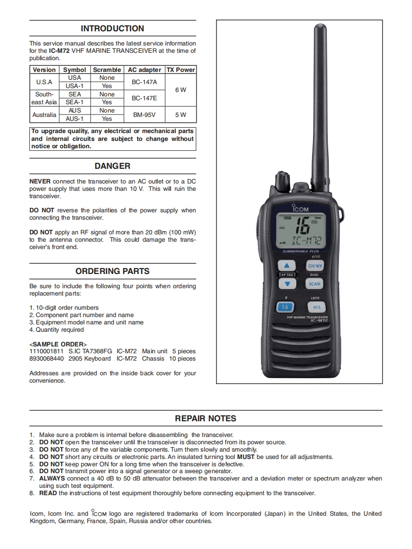 IC-M72_Service-Manual维修手册电器原理图找手册网32天前发布关注私信3.67MB33页033IC-M72_Service-Manual维修手册电器原理图此内容为付费资源,请付费后查看¥19¥21黄金会员免费钻石会员免费登录购买付费资源 第1页 / 共33页 第2页 / 共33页 第3页 / 共33页 第4页 / 共33页 第5页 / 共33页 第6页 / 共33页 第7页 / 共33页 第8页 / 共33页 第9页 / 共33页 第10页 / 共33页 试读已结束,还剩23页,您可下载完整版后进行离线阅读 THE END艾可慕 文本预览 iCOMSERVICEMANUALVHF MARINE TRANSCEIVERIC-M72S-14221MZ-C1Jan.2006com Inc. 查看更多 收起部分 喜欢就支持一下吧收藏