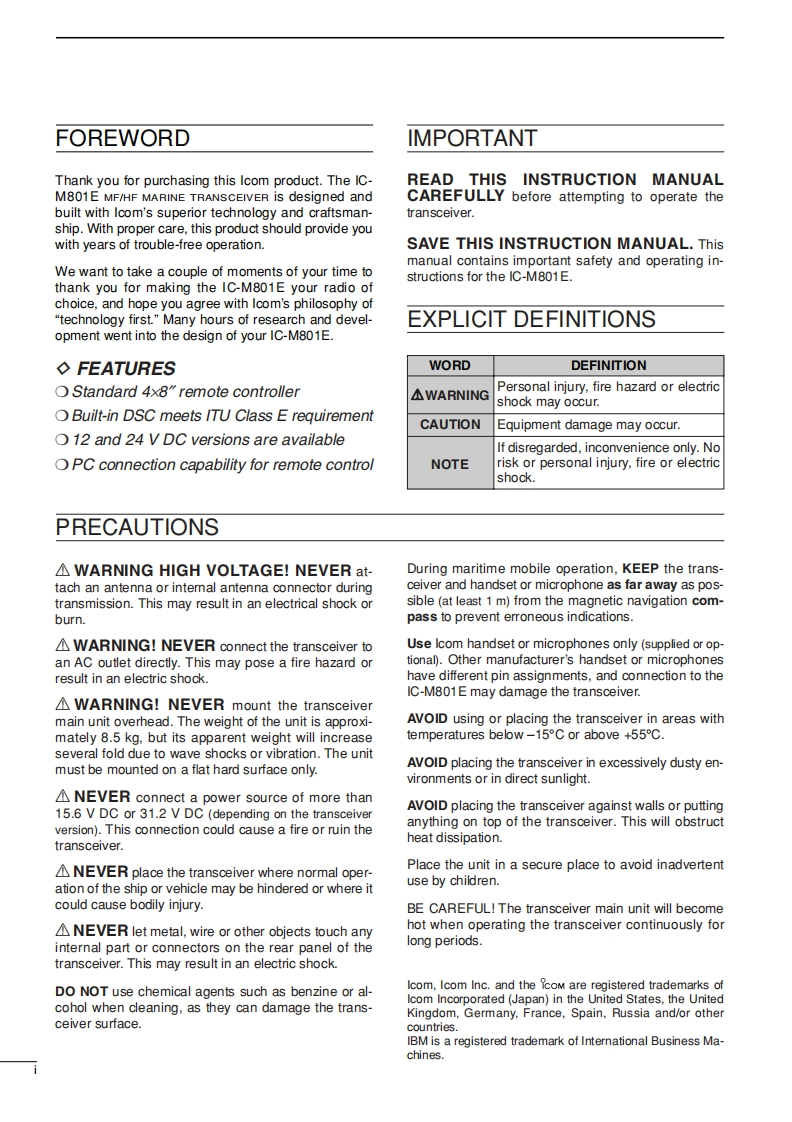 IC-M801E_Manual操作说明书手册找手册网32天前发布关注私信2.83MB80页041IC-M801E_Manual操作说明书手册此内容为付费资源,请付费后查看¥19¥21黄金会员免费钻石会员免费登录购买付费资源 第1页 / 共80页 第2页 / 共80页 第3页 / 共80页 第4页 / 共80页 第5页 / 共80页 第6页 / 共80页 第7页 / 共80页 第8页 / 共80页 第9页 / 共80页 第10页 / 共80页 试读已结束,还剩70页,您可下载完整版后进行离线阅读 THE END艾可慕 文本预览 COMINSTRUCTION MANUALMF/HF MARINE TRANSCEIVERIC-M801E1C-801E6Icom Inc. 查看更多 收起部分 喜欢就支持一下吧收藏