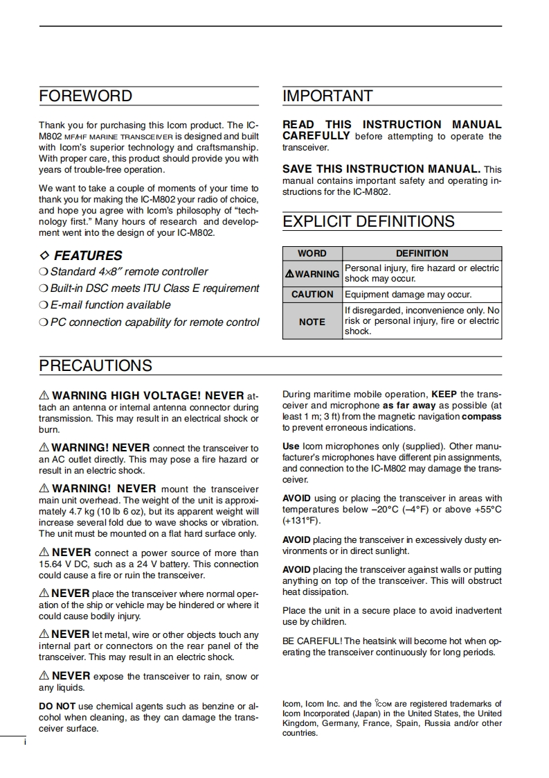 IC-M802_Manual操作说明书手册找手册网31天前发布关注私信2.09MB78页021IC-M802_Manual操作说明书手册此内容为付费资源,请付费后查看¥19¥21黄金会员免费钻石会员免费登录购买付费资源 第1页 / 共78页 第2页 / 共78页 第3页 / 共78页 第4页 / 共78页 第5页 / 共78页 第6页 / 共78页 第7页 / 共78页 第8页 / 共78页 第9页 / 共78页 第10页 / 共78页 试读已结束,还剩68页,您可下载完整版后进行离线阅读 THE END艾可慕 文本预览 COMINSTRUCTION MANUALMF/HF MARINE TRANSCEIVERIC-MB321C-M802Icom Inc. 查看更多 收起部分 喜欢就支持一下吧收藏