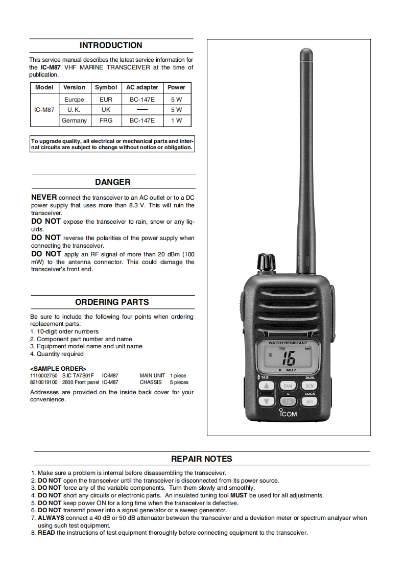 IC-M87-Service-manual维修手册含电器原理图找手册网32天前发布关注私信5.63MB39页033IC-M87-Service-manual维修手册含电器原理图此内容为付费资源,请付费后查看¥19¥21黄金会员免费钻石会员免费登录购买付费资源 第1页 / 共39页 第2页 / 共39页 第3页 / 共39页 第4页 / 共39页 第5页 / 共39页 第6页 / 共39页 第7页 / 共39页 第8页 / 共39页 第9页 / 共39页 第10页 / 共39页 试读已结束,还剩29页,您可下载完整版后进行离线阅读 THE END艾可慕 文本预览 iCOMSERVICEMANUALVHF MARINE TRANSCEIVERIC-M87Icom Inc. 查看更多 收起部分 喜欢就支持一下吧收藏