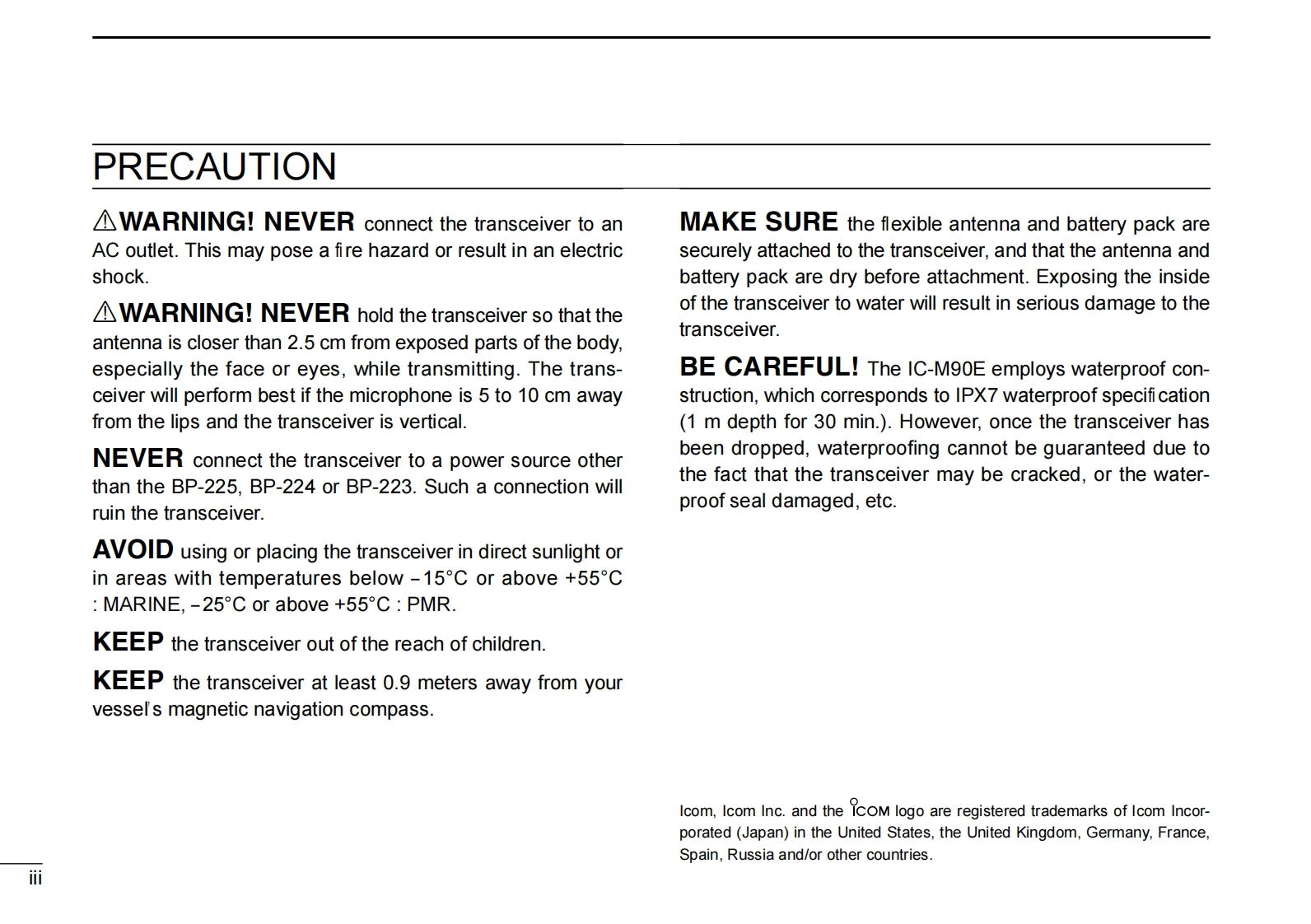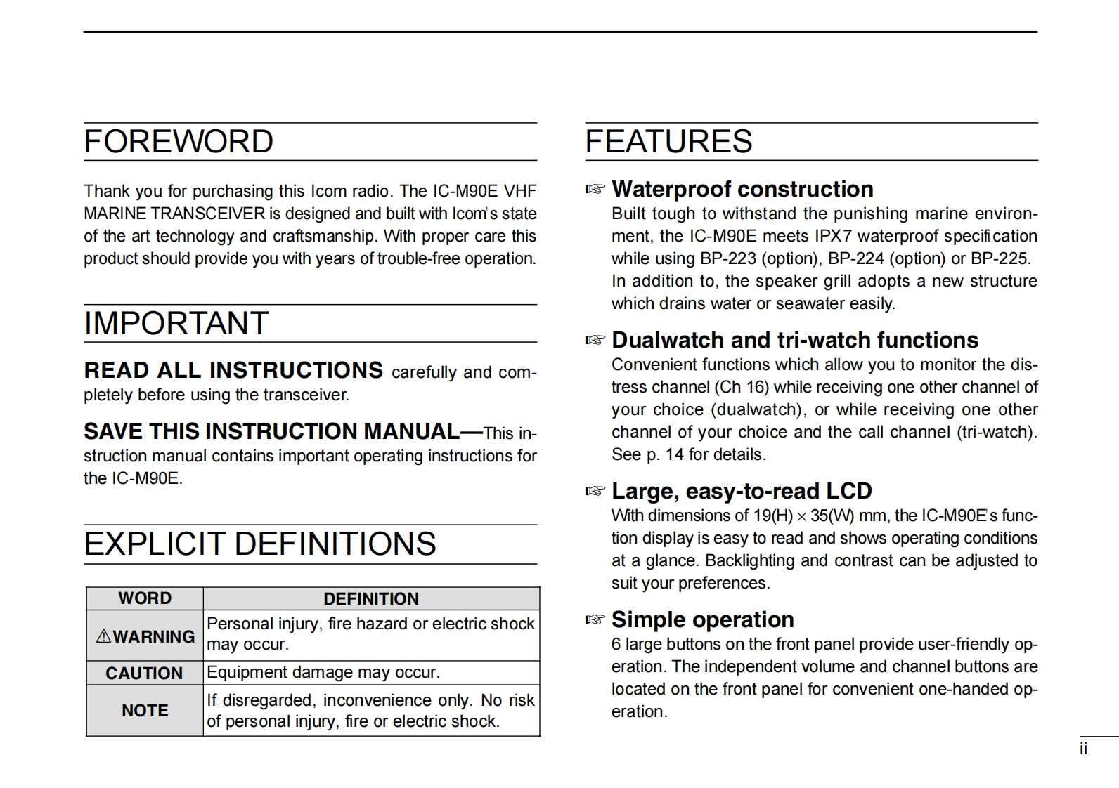 IC-M90E_Manual操作说明书手册找手册网31天前发布关注私信0.93MB40页020IC-M90E_Manual操作说明书手册此内容为付费资源,请付费后查看¥19¥21黄金会员免费钻石会员免费登录购买付费资源 第1页 / 共40页 第2页 / 共40页 第3页 / 共40页 第4页 / 共40页 第5页 / 共40页 第6页 / 共40页 第7页 / 共40页 第8页 / 共40页 第9页 / 共40页 第10页 / 共40页 试读已结束,还剩30页,您可下载完整版后进行离线阅读 THE END艾可慕 文本预览 COMINSTRUCTION MANUALVHF MARINE TRANSCEIVERC-M9OE。ICOMTAGDIALSCANCHANNEL716Icom Inc.IC-M90E 查看更多 收起部分 喜欢就支持一下吧收藏