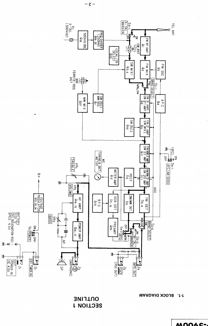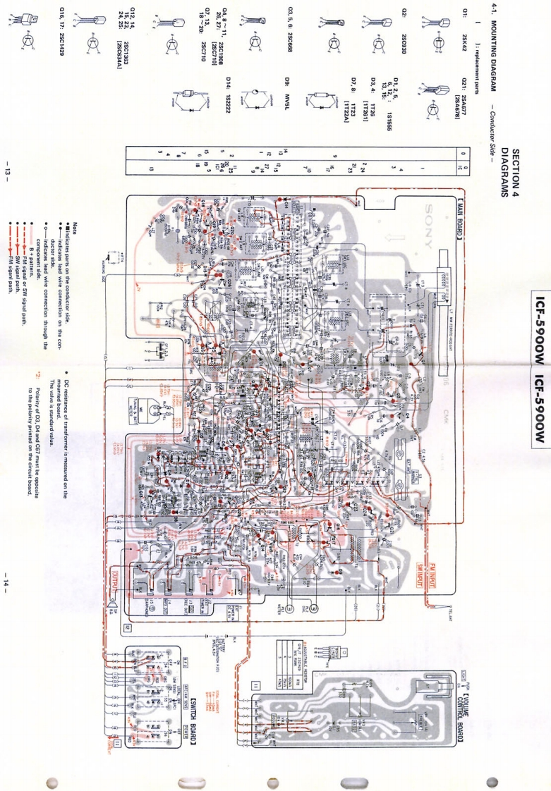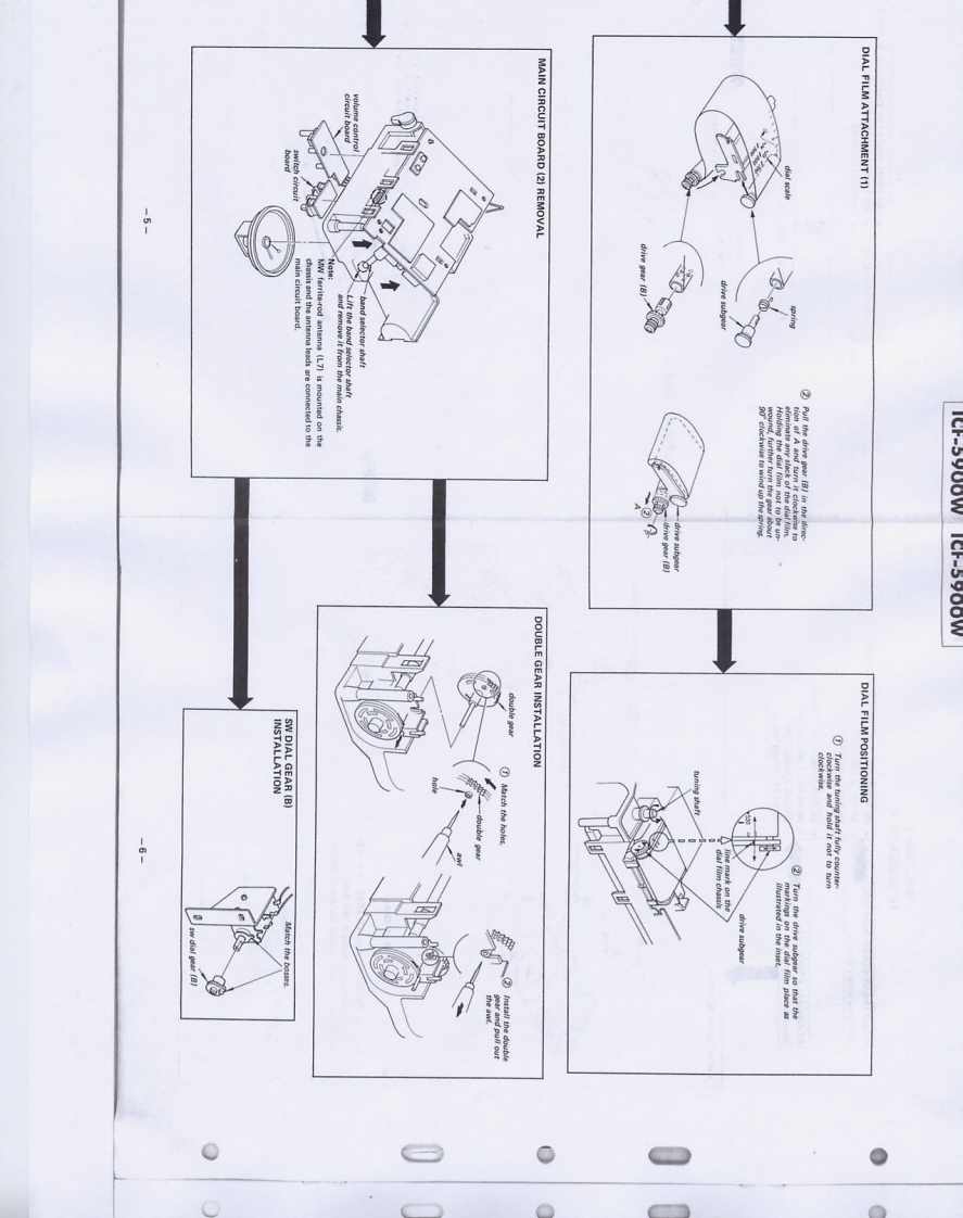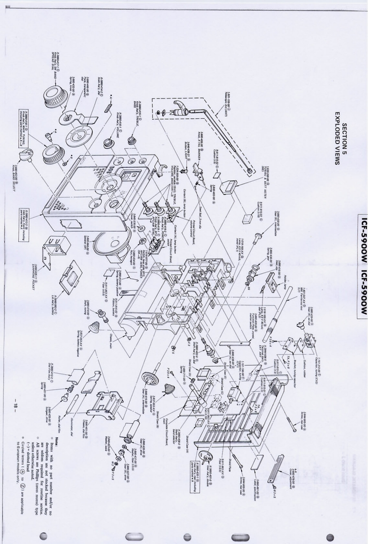 ICF-5900WUS ModelCanadian ModelUK ModelAEP ModelE ModelFM/AMMULTI-BAND RECEIVERSPECIFICATIONSPower Requirements:4.5 V dc,three batteries size D(IEC designation R20)US and Canadian Model120 V ac,60Hz with Sony ac power adaptor AC-110UK,AEP and E Model220-240V ac(100,110-127V adjustable)50/60Hz with optional Sony ac power adaptor AC-3WAC-456C (West Germany Model)or 12V car battery with optional Sony car battery cord DCC-127HPower Output:1,900mW de(Total Harmonic Distortion 10%)Power Consumption:US and Canadian Model6W ac (60Hz)with Sony ac power adaptor AC-110UK.AEP and E Model7.4VA(50Hz)6.8VA(60Hz)with optional ac power adaptor AC-3WCircuit Systems:FM/MW:SuperheterodyneSW:Dual conversion superheterodyneFrequency Range:FM:87.5-108 MHzSW1:3.9-10MHz(77-30mlSW2:11.7-20MHz(25.6-15m)SW3:20-28MHz15-10.7mlMW:530-1.605kHzAntennas:FM/SW:Telescopic antenna,external antenna terminalsMW:Built-in ferrite-rod antenna,external antenna terminal0Speaker:10 cm (4 inches)dia.Dimensions:Approx.223(W×234(h)×102(d)mm8%(W)×9%(h)×4(d)inchesSONY(Including projecting parts and controls)Weight:Approx.2.2 kg,4 Ib 7 oz(Including batteries)SERVICE MANUAL