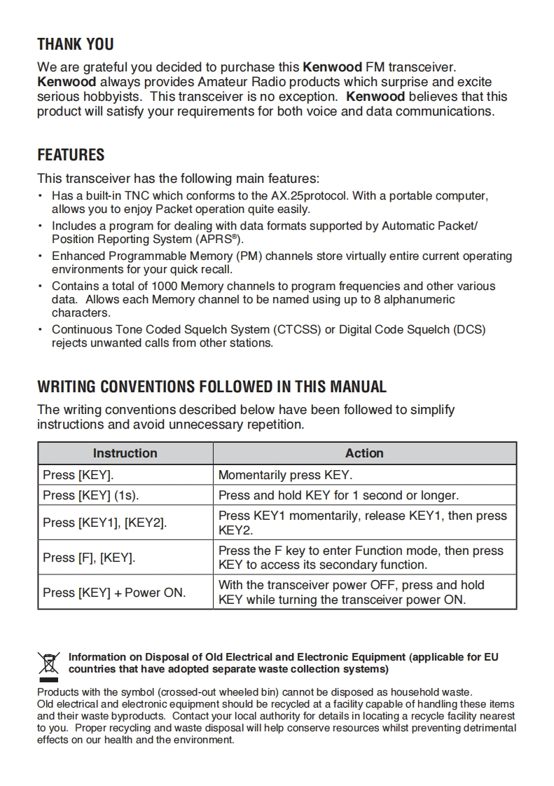 INSTRUCTION MANUALKENWOOD回回回回回回回144/440 MHz FM DUAL BANDERTM-D710A144/430 MHz FM DUAL BANDERTM-D710A/TM-D710EOnly basic operations are explained in thisinstruction manual.For a detailed explanation onthe operations,refer to the PDF file supplied on theCD-ROM.This equipment complies with the essential requirements ofDirective 1999/5/EC.The use of the warning symbol means the equipment is subjectto restrictions of use in certain countries.This equipment is intended for use in all EU countries and CH,LI,IS and NO,and requires a license.Kenwood Corporation©B62.1986-00(K,E,M4)09080706050403020100(∈0682①