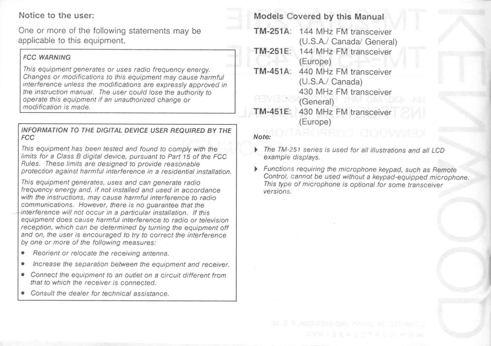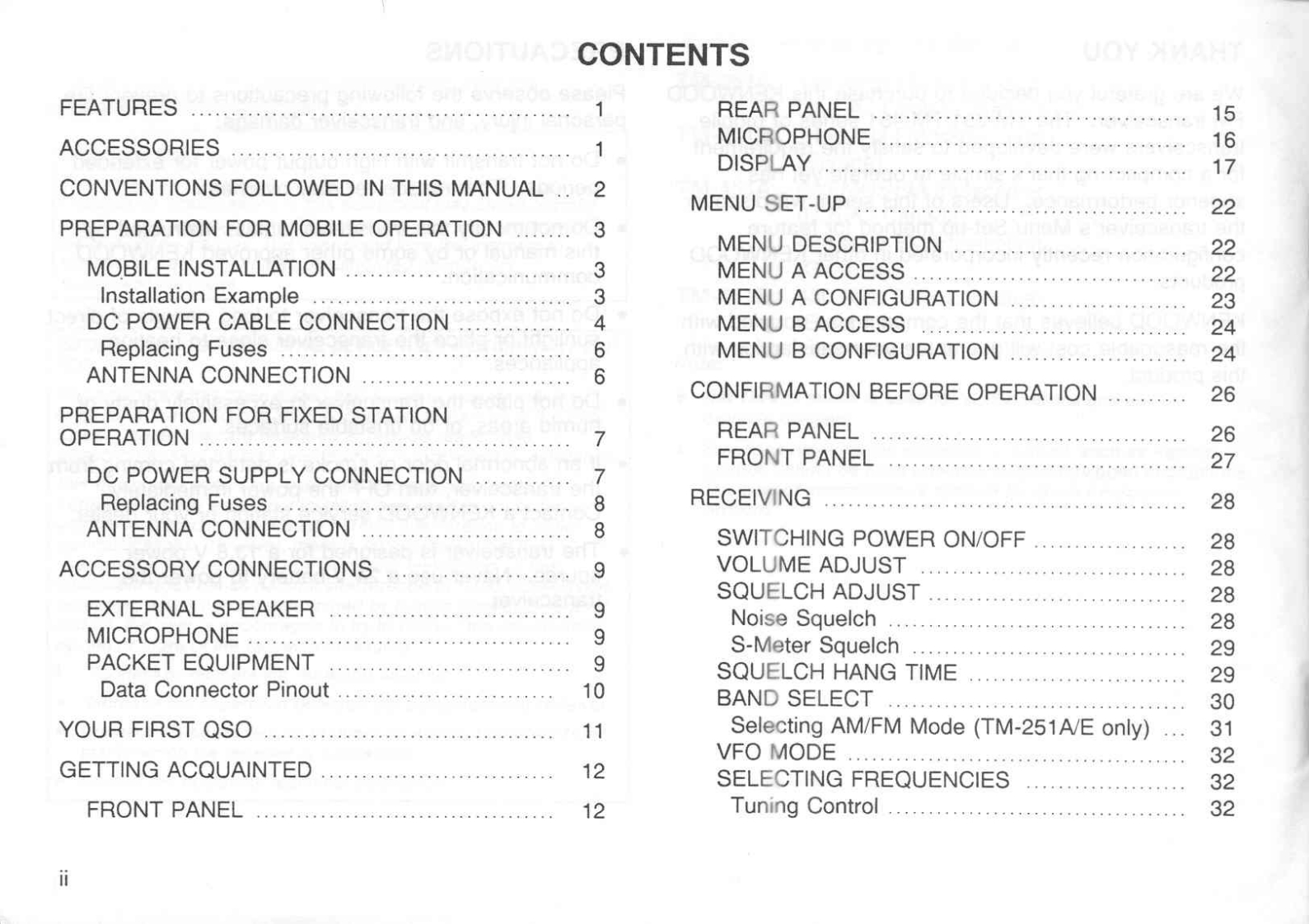 KENWOOD–TM-251-操作说明书手册找手册网31天前发布关注私信13.70MB130页026KENWOOD–TM-251-操作说明书手册此内容为付费资源,请付费后查看¥19¥21黄金会员免费钻石会员免费登录购买付费资源 第1页 / 共130页 第2页 / 共130页 第3页 / 共130页 第4页 / 共130页 第5页 / 共130页 第6页 / 共130页 第7页 / 共130页 第8页 / 共130页 第9页 / 共130页 第10页 / 共130页 试读已结束,还剩120页,您可下载完整版后进行离线阅读 THE END建武 文本预览 TM-251A/251E29TM-451A/451E144,430/440 MHz FM TRANSCEIVERINSTRUCTION MANUALKENWOOD CORPORATIONDownloaded byRadioAmateur.EUCPRINTED IN JAPAN B62-0455-08(K,P,E,M)94/12111098765432193/12 查看更多 收起部分 喜欢就支持一下吧收藏
