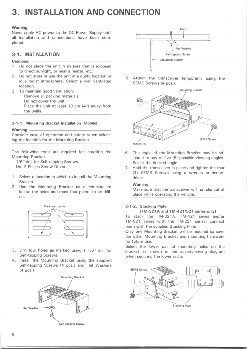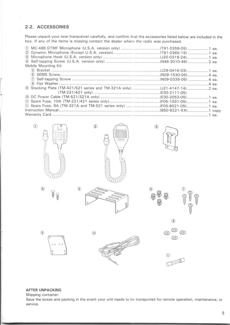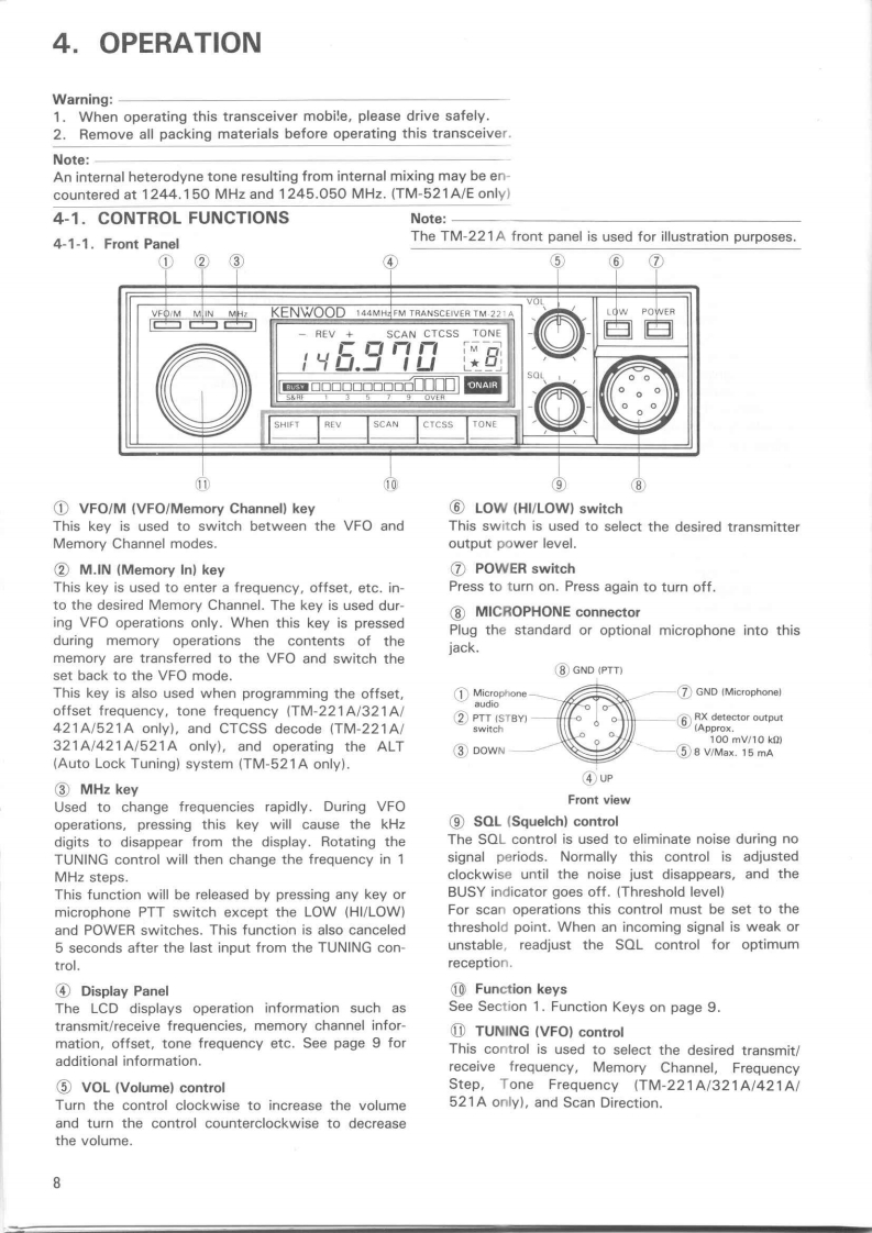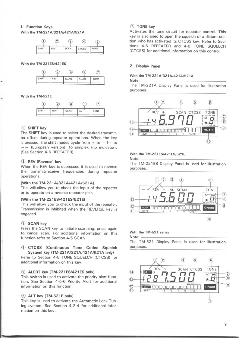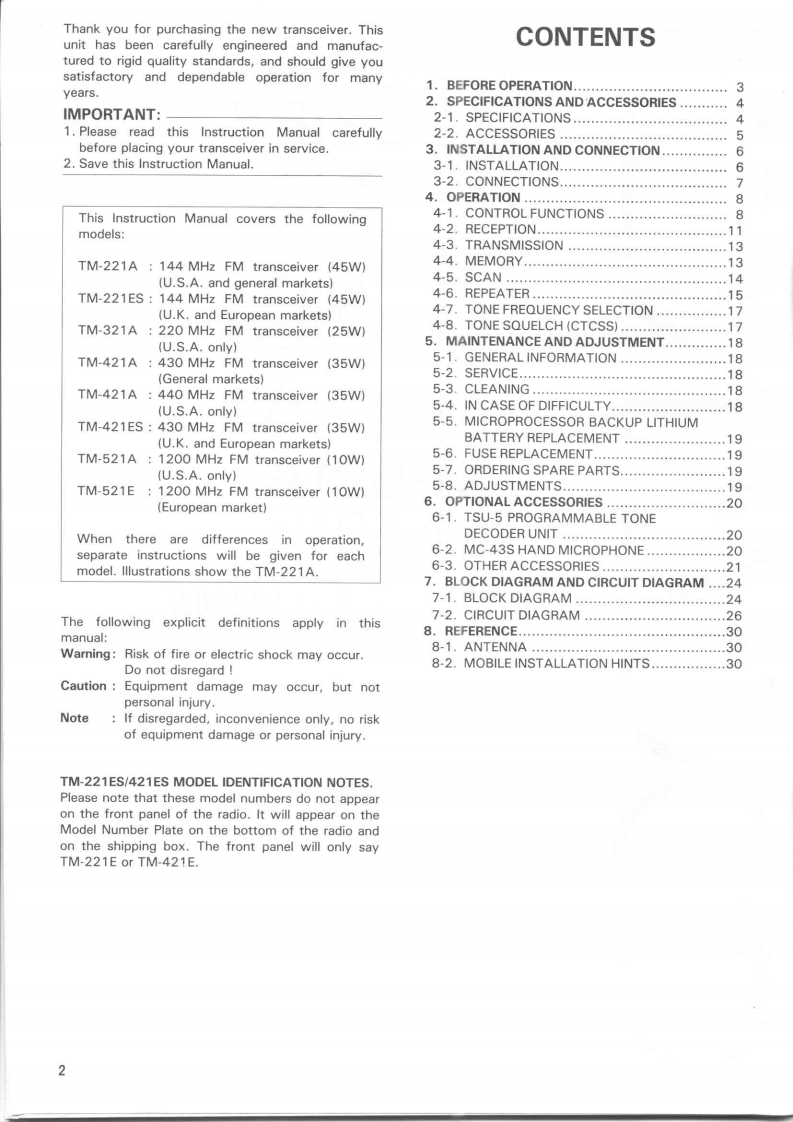 144MHz FM TRANSCEIVERTM-221ATM-221ES220MHz FM TRANSCEIVERTM-321AKENWOOD430MHz FM TRANSCEIVERTM-421ATM-421ES440MHz FM TRANSCEIVERTM-421A1200MHz FM TRANSCEIVERTM-521ATM-521EINSTRUCTION MANUALKENWOOD CORPORATIONCPRINTED IN JAPAN B50-8221-20(K,M,T,W)(T)89/12111098765432188/1211109
