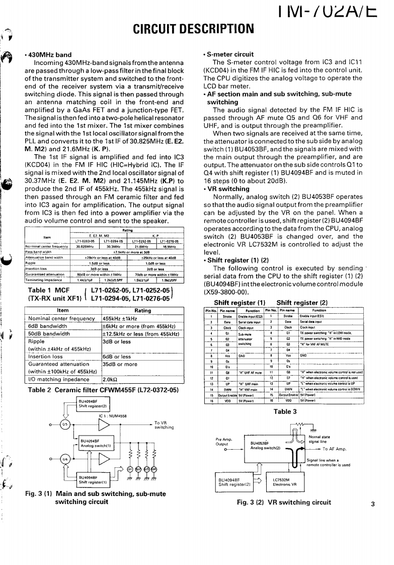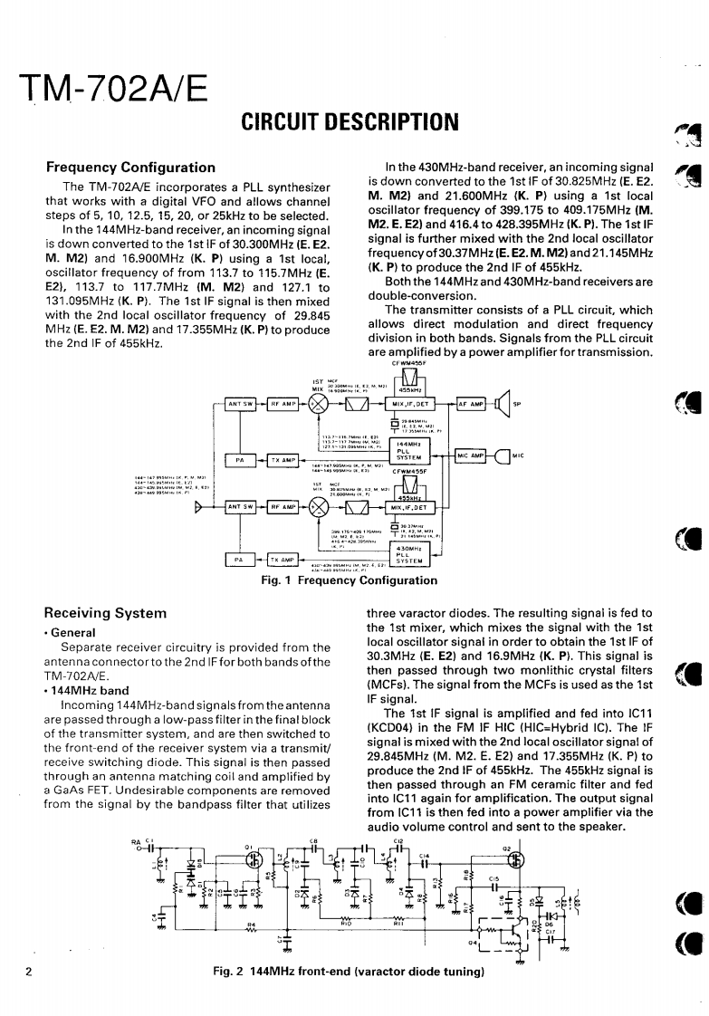 44/440MHZ FM UUAL BANUEMKENWOODTM-702A/ESERVICE MANUALC 1990-8 PRINTED IN JAPANB51-8077-00(A)599Microphone"(T91-小Knob (VF0,MR.MHz)Panel ass'y*K27-3035-14)×3A62-Metallic cabinetA01-1067-23)Knob (LOW)(K27-3067-04】Knob (POWER)(K27-3066-041RadioAmateur.EUKENWOODKnob (VOL.SOL)1K27-3157-04)×2Knob (BAND)-Cylindrical receptacle (MIC)Knob (MAIN){K27-3073-04)(E06-0860-05)(K29-3156-04)Knob (REV)Knob (CALL)K27-3072-04(K27-3068-04)Knob (TONE)(K27-3071-04)Knob (SHIFT)(K27-3074-04)Knob (F)Photo is TM-702A.(K27-3069-04)*Refer to parts list on page 18.CONTENTSMIC AMP(X59-3610-00}.51DESCRIPTION OFTX RX UNIT (X57-3680-XX)...52.57SEMICONDUCTOR DATA..17SCHEMATIC DIAGRAM…PARTS LIST.…18TERMINALEXPLODED VIEW..36BLOCK DIAGRAM.61PACKING.3LEVEL DIAGRAM...63ADJUSTMENT..................38DTU-2(DTMF UNIT).…..64.66PC BOARD VIEWS/CIRCUIT DIAGRAM......43TSU-6(CTCSS UNIT)................LCD ASSY'S(B38-0348-05).43MC-44 (MULTI FUNCTION MICROPHONE).........68430PLL(X58-3480-01).44MC-44 DM/MC-44DME (MULTI FUNCTION144PLL(X58-3500-00…46MICROPHONE WITH AUTOPATCH)............69144PLL(X58-3670-11)….48MC-44E (MULTI FUNCTION MICROPHONE)........70ELEV0L(X59-3800-00).50SPECIFICATIONS..............BACK COVER