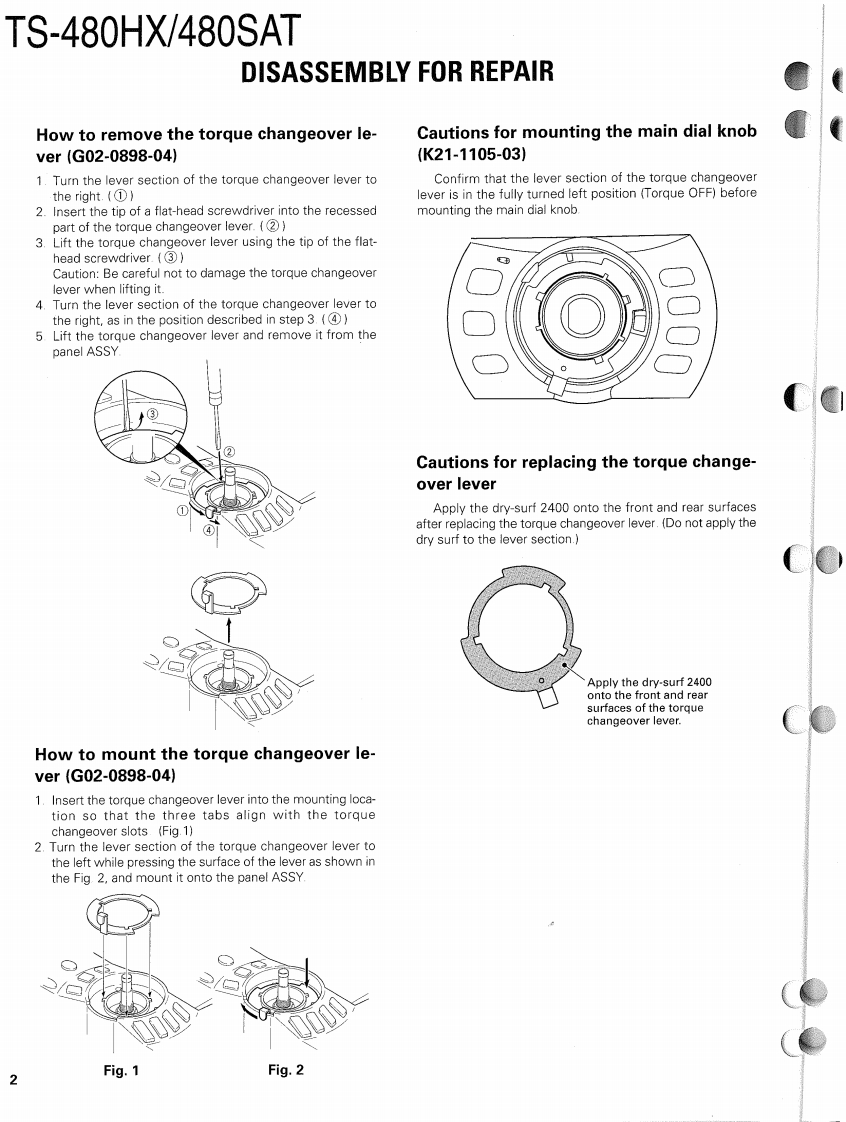 HF/50MHz ALL MODE TRANSCEIVERTS-480HX/480SATKENWOODSERVICE MANUAL2003-11 PRINTED IN JAPANB51-8667-00(N)694MicrophoneCabinet(Upper)T91-0638-05)(A01-2189-02)Panel assyKnobPanel(A62-1076-03)(K29-9265-03)(A62-1079-01)4200084200KnobKey topKnob ringKnobFoot(K29-9267-03)(K29-9263-02(K29-9264-04)K29-9270-03(J02-0441-05)×4KnobStandKnob (Main dial)KnobCabinet (Lower】(K29-9266-03)(J09-0409-03)K21-1105-03)(29-9267-03)(A01-2190-02)Downloaded byRadioAmateur.EUCONTENTSDISASSEMBLY FOR REPAIR......................2FINAL UNIT (X45-365X-XX)(C/3)...........96CIRCUIT DESCRIPTION .............3FINAL UNIT (X45-366X-XX)(A/3)..................98COMPONENTS DESCRIPTION...........14FINAL UNIT (X45-366X-XX)(B/3)..............105SEMICONDUCTOR DATA.20FINAL UNIT (X45-366X-XX)(C/3)...............108PARTS LIST.....27D1 SPLAY UNIT(X54-3410-00(A/3,B/3,C/3).110EXPLODED VIEW..50TX-RX UNIT(X57-663X-XX)(A/2,B/2).116PACKING…54SUB UNIT (X58-4900-XX).....128ADJUSTMENT。55TERMINAL FUNCTION.................129INTERCONNECTION DIAGRAM.76BLOCK DIAGRAM...........134PC BOARD SCHEMATIC DIAGRAMLEVEL DIAGRAM...136RF UNIT(X44-327X-XX)…78ACCESSORIES................140FINAL UNIT (X45-365X-XX)(A/3)..................86SPECIFICATIONS141FINAL UNIT (X45-365X-XX)(B/3).....................93