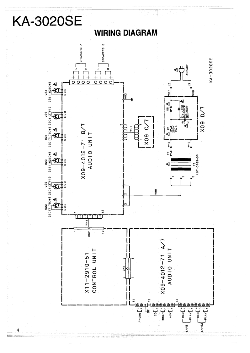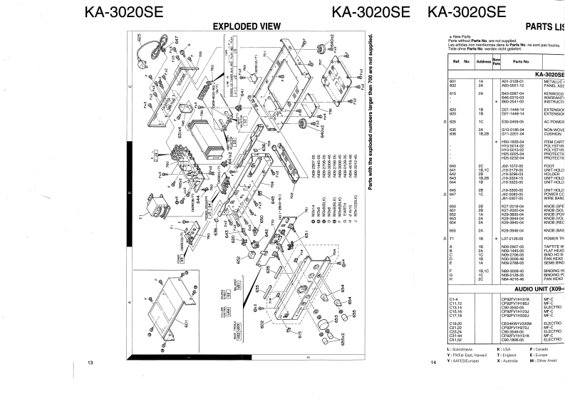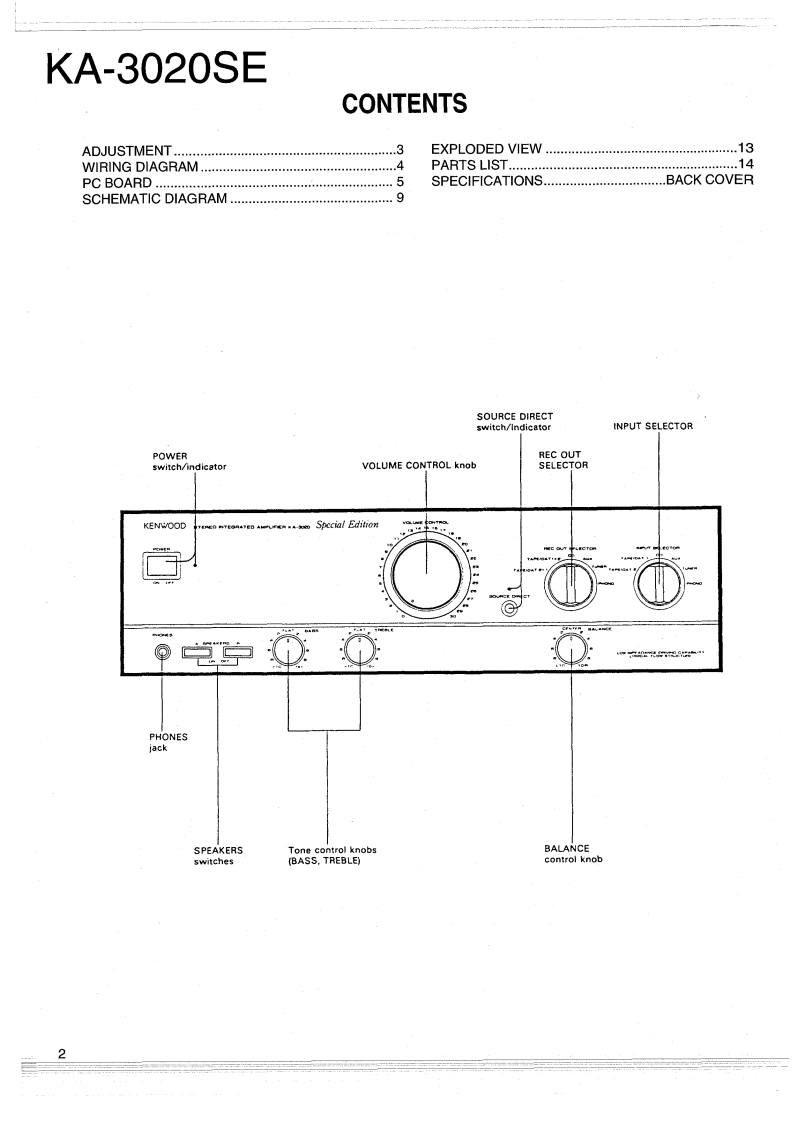 STEREO INTEGRATED AMPLIFIERKENWOOD【KA-3020SESERVICE MANUAL@1995-10 PRINTED IN KOREAB51-5119-00(K1425This manual is available for repair from Serial No.51200001.Knob(POWER)Metallic cabinetPanel ass'yKnob(REC OUT/INPUT)(K29-3835-04)(A01-3128-01)(A60-0551-12)(K29-3945-04)Knob(VOLUME)Knob(BALANCE)(K29-3944-04)(K29-3946-04)Phone jackKnob(SPEAKERS)Knob(BASS,TREBLE)Knob(S.DIRECT)Foot(PHONES)K27-2018-04)X2(K29-3946-04)X2(K27-2020-04)(J02-1072-05)x4(E11-0208-05)Phono jack(2P)Phono jack(8P)Power cord bushing(E13-0249-05)(E13-0825-05)(J42-0083-05)01900Binding postPhono jack(6P)Screw terminal boardAC power cord(N08-0128-35(E13-0633-05)(E20-0839-15)(E30-0459-05)