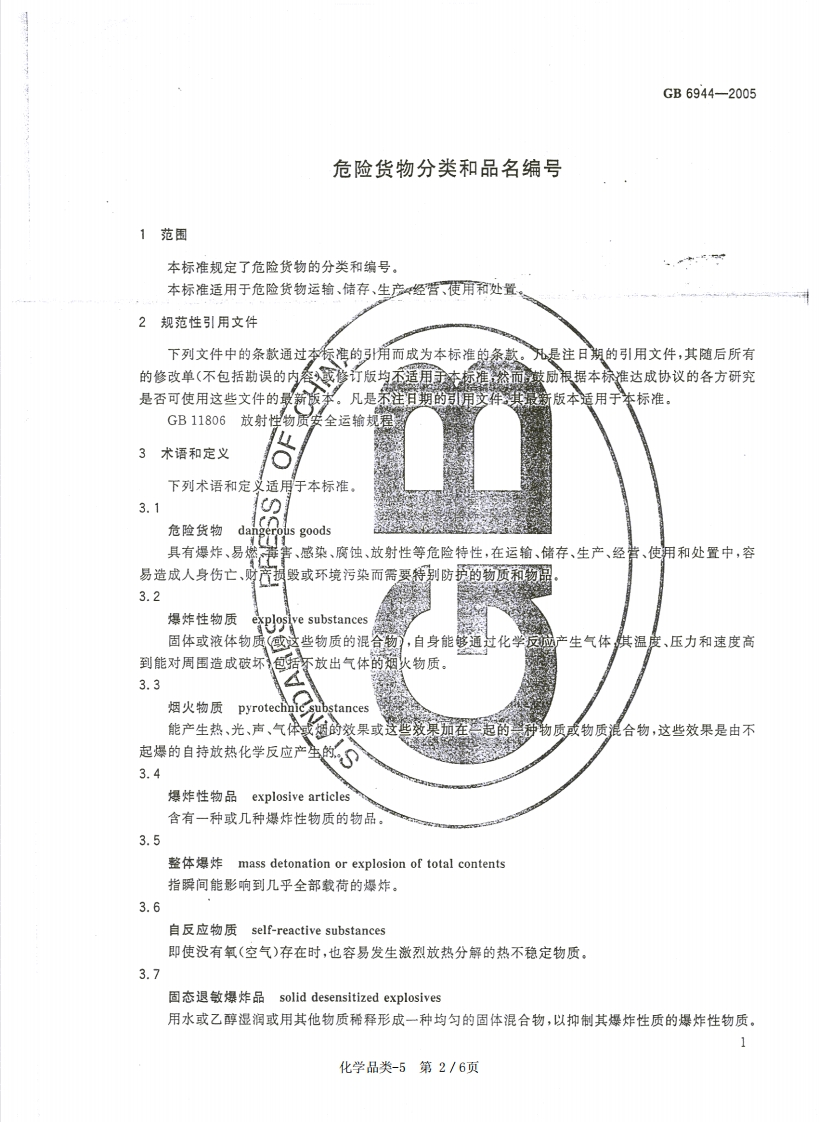 危险货物分类及品名编号GB6944-2005348072@abc4个月前发布关注私信1.19MB6页030危险货物分类及品名编号GB6944-2005此内容为付费资源,请付费后查看¥19¥23黄金会员免费钻石会员免费立即购买您当前未登录!建议登陆后购买,可保存购买订单付费资源 第1页 / 共6页 第2页 / 共6页 试读已结束,还剩4页,您可下载完整版后进行离线阅读 THE END标准规范 文本预览 1CS13.300A80中华人民共和国国家标准GB6944-2005代替GB6944一1986危险货物分类和品名编号Classification and code of dangerous goods2005-07-26发布2005-11-01实施中华人民共和国国家质量监督检验检疫总局中国国家标准化管理委员会发布化学品类-5第1/6页 查看更多 收起部分 喜欢就支持一下吧收藏