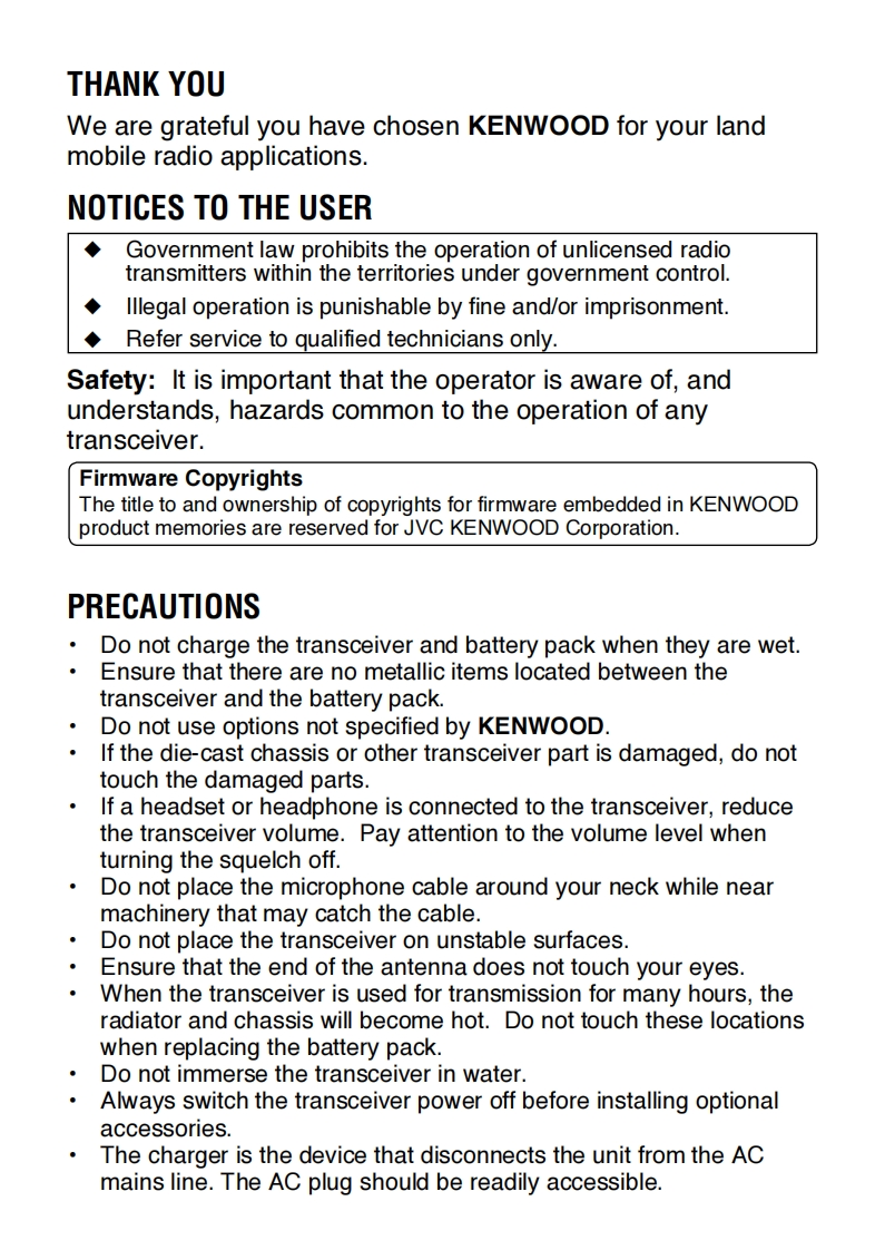 KenwoodTK-2406-3406操作说明书手册找手册网31天前发布关注私信1.66MB21页031KenwoodTK-2406-3406操作说明书手册此内容为付费资源,请付费后查看¥19¥21黄金会员免费钻石会员免费登录购买付费资源 第1页 / 共21页 第2页 / 共21页 第3页 / 共21页 第4页 / 共21页 第5页 / 共21页 第6页 / 共21页 第7页 / 共21页 第8页 / 共21页 第9页 / 共21页 第10页 / 共21页 试读已结束,还剩11页,您可下载完整版后进行离线阅读 THE END建武 文本预览 INSTRUCTION MANUALKENWOODVHF FM TRANSCEIVERTK-2406UHF FM TRANSCEIVERTK-3406JVCKENWOOD Corporation©B62-2481-00(M)09080706050403020100Downloaded from www.rads.ru 查看更多 收起部分 喜欢就支持一下吧收藏