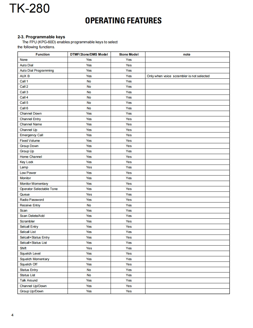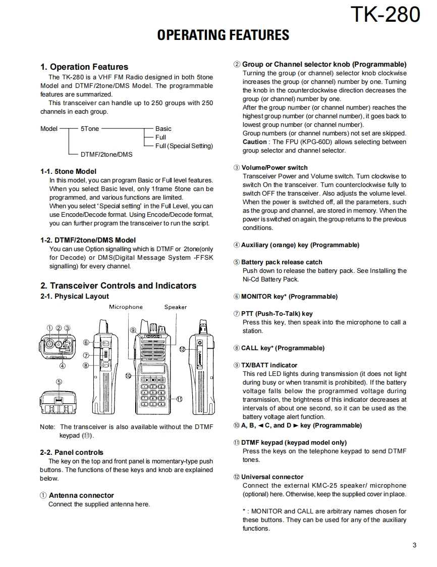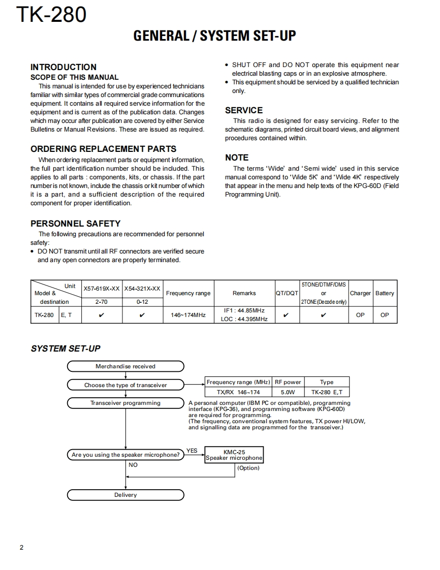 VHF FM TRANSCEIVERKENWOODTK-280SERVICE MANUALE VERSIONS2000-4 PRINTED IN JAPANB51-8521-00()553CONTENTSHelical antenna(T90-0680-05:TGENERAL.2(T90-0695-15):ESYSTEM SET-UP.2Knob(ENC)OPERATING FEATURES.3(K29-5232-03)REALIGNMENT16CIRCUIT DESCRIPTON..20Knob(VOL)(K29-5231-03)SEMICONDUCTOR DATA26DESCRIPTION OF COMPONENTS32PARTS LIST.33Panel assyEXPLODED VIEW.40(A62-0535-04)PACKING41Badge(B43.1106-14)ADJUSTMENT..............42TERMINAL FUNCTION52PC BOARD VIEWSCabinet assyKnob(PTT etc)A02.2055-53)DISPLAY UNIT (X54-3210-12).....53(K29-5157-03)(16 keys)TX-RX UNIT (X57-6192-70)59SCHEMATIC DIAGRAM....653H/00DBLOCK DIAGRAM…69LEVEL DIAGRAM..........714■enOPTONS.......23 nSPECIFICATIONS.....BACK COVERPacking(G53-0896-02)(16 keys)CAUTIONWhen using an external power connector,please use with maximum final modulePhoto is E type with KRA-14protection of 9V.Downloaded from www.rads.ru