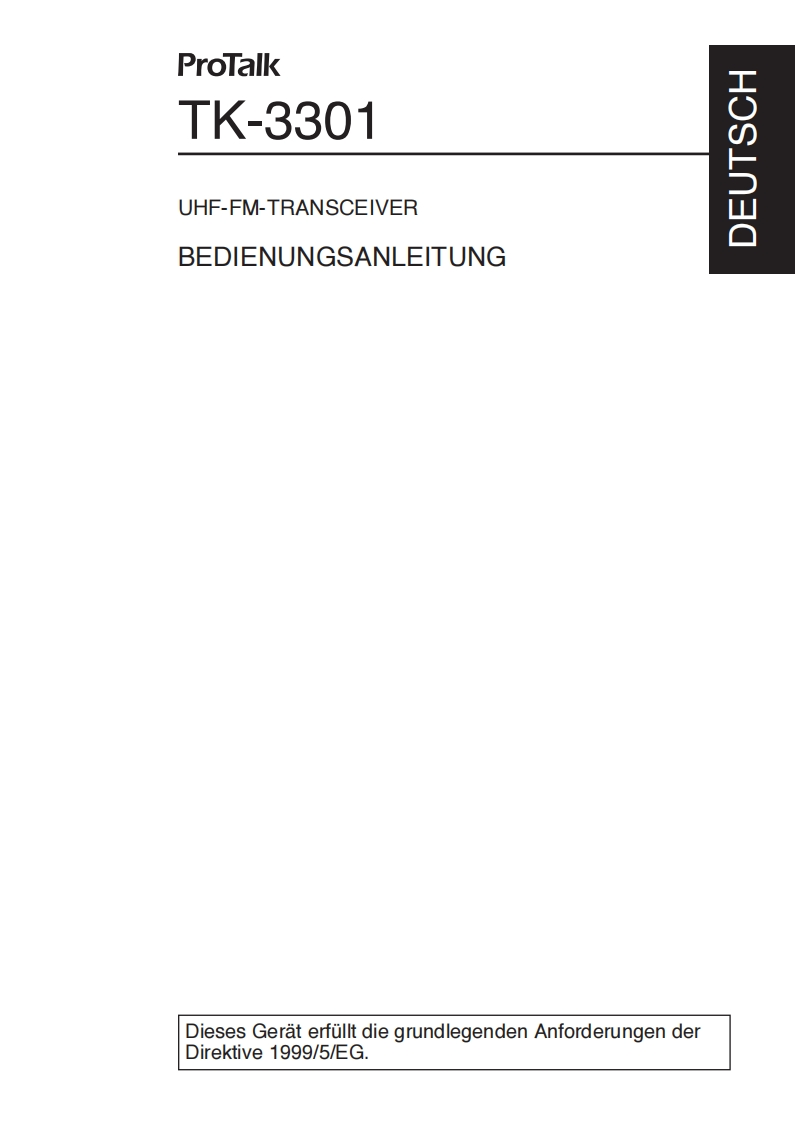INSTRUCTION MANUALMODE D'EMPLOIMANUAL DE INSTRUCCIONESMANUALE DI ISTRUZIONIBEDIENUNGSANLEITUNGGEBRUIKSAANWIJZINGKULLANIM KILAVUZUKENWOODProTalkProTalkTK-3301UHF FM TRANSCEIVEREMETTEUR-RECEPTEUR FM UHFTRANSCEPTOR FM UHFRICETRASMETTITORE FM UHFUHF-FM-TRANSCEIVERUHF FM ZENDONTVANGERUHF FM EL TELSIZIKenwood Corporation©B62-2154-00(E,T)09080706050403020100Downloaded from www.rads.ru