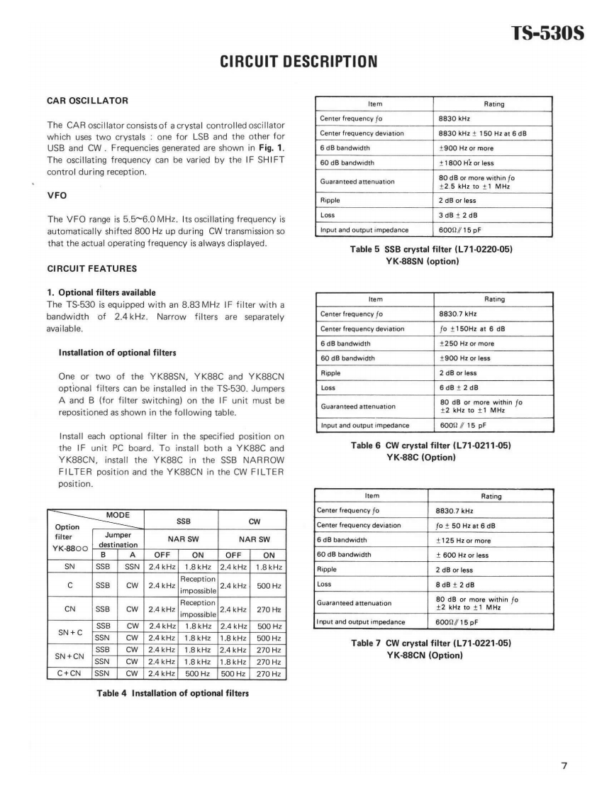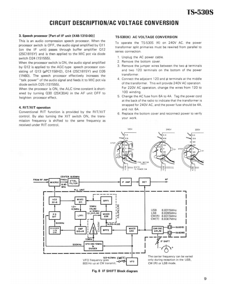 KENWOODSERVICE MANUALTS-530S/SP/D米米:KOREAMARKET ONLYSP-230,VF0-240,AT-230,PK-3*HF TRANSCEIVER香SP.230TS-530SVF0-240AT-230CONTENTSSPECIFICATION..........................2COUNTER UNIT (X54-1540-00)19CIRCUIT DESCRIPTION....................3PARTS LIST20AC VOLTAGE CONVERSION...,·····9PACKING,,····27INSIDE VIEWS...,..····10DISASSEMBLY .........................28PC BOARD VIEWS/CIRCUIT DIAGRAMSADJUSTMENTS33RECTIFIER UNIT(X43-1370-02).·...···11LEVEL DIAGRAM..···45ANT RELAY B0ARDJ25-3015-04)..·.····11Vf0-24046SW1TCHB0ARDJ25-3016-03)..·...·.···11AT-230.…48FINAL UNIT (X56-1380-00)11SCHEMATIC ABBREVIATION,,,····,·51VF0UNIT(X40-1170-00)12,13SCHEMATIC DIAGRAM(S TYPE).······53AFUN1T(X49-1150-00).··12,13SCHEMATIC DIAGRAM(SP/D TYPE)·.···53,541FUN1T(X48-1310-00)14,15BLOCK DIAGRAM.......................54PLL UN1T(X50-1680-01)..·.···16,17SP-230.BACK COVERRFUN1T(X44-1360-01)..........18PK3………BACK COVER