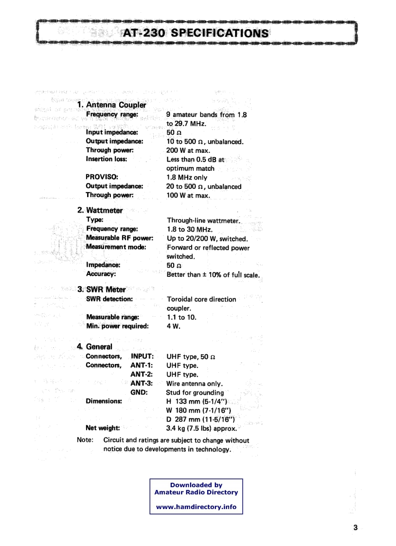 Kenwood_AT-230_user操作说明书手册找手册网31天前发布关注私信1MB11页045Kenwood_AT-230_user操作说明书手册此内容为付费资源,请付费后查看¥19¥21黄金会员免费钻石会员免费登录购买付费资源 第1页 / 共11页 第2页 / 共11页 第3页 / 共11页 第4页 / 共11页 第5页 / 共11页 第6页 / 共11页 第7页 / 共11页 第8页 / 共11页 第9页 / 共11页 第10页 / 共11页 试读已结束,还剩1页,您可下载完整版后进行离线阅读 THE END建武 文本预览 ANTENNA TUNER32Model AT-230留起醒骨冒置国虱留Beh.T.HultermansPostbus4228说5604 EE EindhovenP3Downloaded byAmateur Radio Directorywww.hamdirectory.infoA淘INSTRUCTION MANUAL 查看更多 收起部分 喜欢就支持一下吧收藏