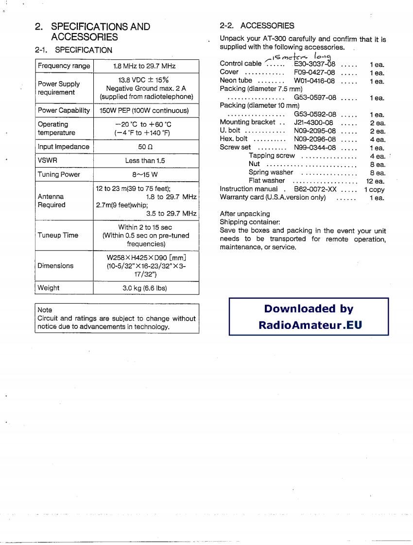 Kenwood_AT-300_user操作说明书手册找手册网31天前发布关注私信0.18MB7页042Kenwood_AT-300_user操作说明书手册此内容为付费资源,请付费后查看¥19¥21黄金会员免费钻石会员免费登录购买付费资源 第1页 / 共7页 第2页 / 共7页 第3页 / 共7页 第4页 / 共7页 第5页 / 共7页 第6页 / 共7页 第7页 / 共7页 已完成全部阅读,共7页 THE END建武 文本预览 AUTOMATIC ANTENNA TUNERAT-300INSTRUCTION MANUALKENWOOD CORPORATIONKENWOODDownloaded byRadioAmateur.EUOPRINTED IN JAPAN B62-0072-08(K,M)92/H211109R765432191/1211109A7分543.21 查看更多 收起部分 喜欢就支持一下吧收藏
