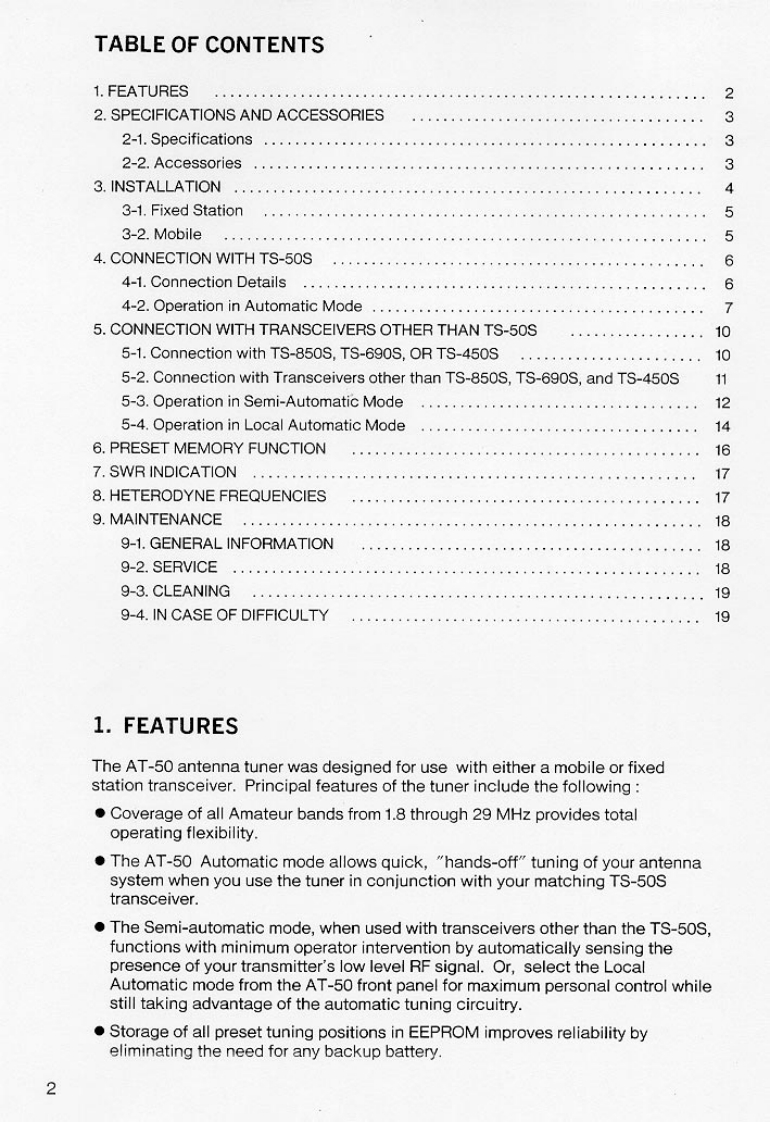 Kenwood_AT-50_user操作说明书手册找手册网31天前发布关注私信3.15MB21页045Kenwood_AT-50_user操作说明书手册此内容为付费资源,请付费后查看¥19¥21黄金会员免费钻石会员免费登录购买付费资源 第1页 / 共21页 第2页 / 共21页 第3页 / 共21页 第4页 / 共21页 第5页 / 共21页 第6页 / 共21页 第7页 / 共21页 第8页 / 共21页 第9页 / 共21页 第10页 / 共21页 试读已结束,还剩11页,您可下载完整版后进行离线阅读 THE END建武 文本预览 AUTOMATIC ANTENNA TUNERAT-50INSTRUCTION MANUALKENWOOD CORPORATIONKENWOODDownloaded byRadioAmateur.EUCPRINTED IN JAPAN B62-0320-00(K.M.El(MC)93/121110987654321 查看更多 收起部分 喜欢就支持一下吧收藏