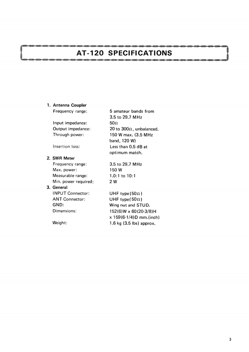kenwood_at120_使用说明书手册找手册网31天前发布关注私信1.45MB12页031kenwood_at120_使用说明书手册此内容为付费资源,请付费后查看¥19¥21黄金会员免费钻石会员免费登录购买付费资源 第1页 / 共12页 第2页 / 共12页 第3页 / 共12页 第4页 / 共12页 第5页 / 共12页 第6页 / 共12页 第7页 / 共12页 第8页 / 共12页 第9页 / 共12页 第10页 / 共12页 试读已结束,还剩2页,您可下载完整版后进行离线阅读 THE END建武 文本预览 型ANTENNA TUNERModel AT-120OPERATINGMANUALYet another PDFcleamup proudly brought to you by wwwrigpix.com 查看更多 收起部分 喜欢就支持一下吧收藏