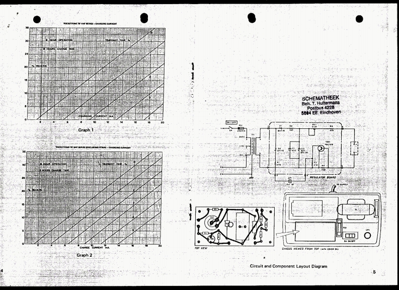 BC10 AND BC16SERVICING OPERATING INSTRUCTIONSSCHEMATHEEKBeh.T.HultermansPo5bu842265604 EE EindhovenThe battery charger BC10 and BC16 allow the 15V 200mAh battery of aPocketfone 70'radiotelephone to be recharged without removal from theradiotelephone unit.The Pocketfone can remain fully operational while its batteryis being charged.If so desired the battery can be charged separately.For this amoulded insert is put into the charging compartment.A stowage is provided forthe microphone of body-worn Pocketfones.Studs on the base of the radiotelephone unit or battery make automatic contactwhen inserted in the charging compartment.To obtain optimum battery life,therate of charge can be pre-adjusted to suit any specific requirement.BC10is for use with the 3-channel 'Pocketfone 70',bodyworn (e.g.PF2UB)or handheld (e.g.PF2FMH)BC16 is for use with the single-channel 'Pocketfone 70'(e.g.PF5UH).