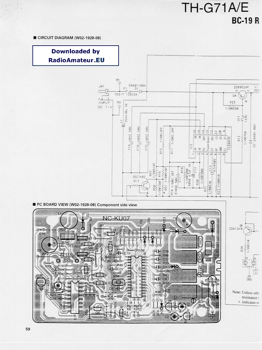 RAPID CHARGERBC-19Downloaded byKENWOODRadioAmateur.EUKENWOOD CORPORATIONINSTRUCTION MANUALATTENTION:The charger operates on the following voltages:CHARGING PROCEDUREU.S.A/Canada:120VAC,60H也oyEurope:230VAC.5060HzATTENTION:Always switch OFF a transceiver equipped with a NiCdCheck the rating label attached to the bottom of the charger for otherbattery pack before inserting the transceiver into the charger.important specifications.1 Plug the AC adapter cable into the adapter jack located on therear of the charger.UNPACKINGItemPart NumberOtyChargerAC adapterW08-0477-XX1(U.S.A./Canada)AC adapter (Europe)W08-0478-XXInstruction manualB62-0810-XX2 Plug the AC adapter into an AC outlet.APPLICABLE NiCd BATTERY PACKSCharge only the NiCd battery packs listed below.Other types ofbatteries may burst causing personal injury.To ACU.S.A./Canadaoutlet·PB-38(6V.650mAh)·PB-39(9.6V,600mAh)ORIENTATIONEuropeAC adapter jackngaaaaaaan5Plug in the supplied8u0AC adapter here.3 Slide a NiCd battery pack or a transceiver equipped with abattery pack into the charging slot.Make sure that the metal contacts on the pack matesecurely with the charger terminals.The indicator lights and charging starts.Slot for batterypackSlide the batterypack into this slotIndicatorThis dual-colorindicatorreports the chargerstatus.CHARGER STATUS TABLEIndicator ColorMeaningIndicates a battery pack is in the slot4RedWhen charging is completed,the indicator lights green.and that charging has started.Remove the battery pack or the transceiver from the chargingBlinking RedIndicates a defective battery pack.slot.GreenIndicates charging has completed.When the charger will not be used for a long time,unplugthe AC adapter from the AC outlet.SPECIFICATIONSAPPROXIMATE CHARGING TIMESDimensions:105X55X135mmBattery PackVoltage Battery Capacity Charging Time(WxHxD)41/8X211/64X55/16inWeight (charger only):Approx.160 g/5.6 ozPB-386.0V650 mAhApprox.60 minutesP8-399.6V600 mAhApprox.90 minutes