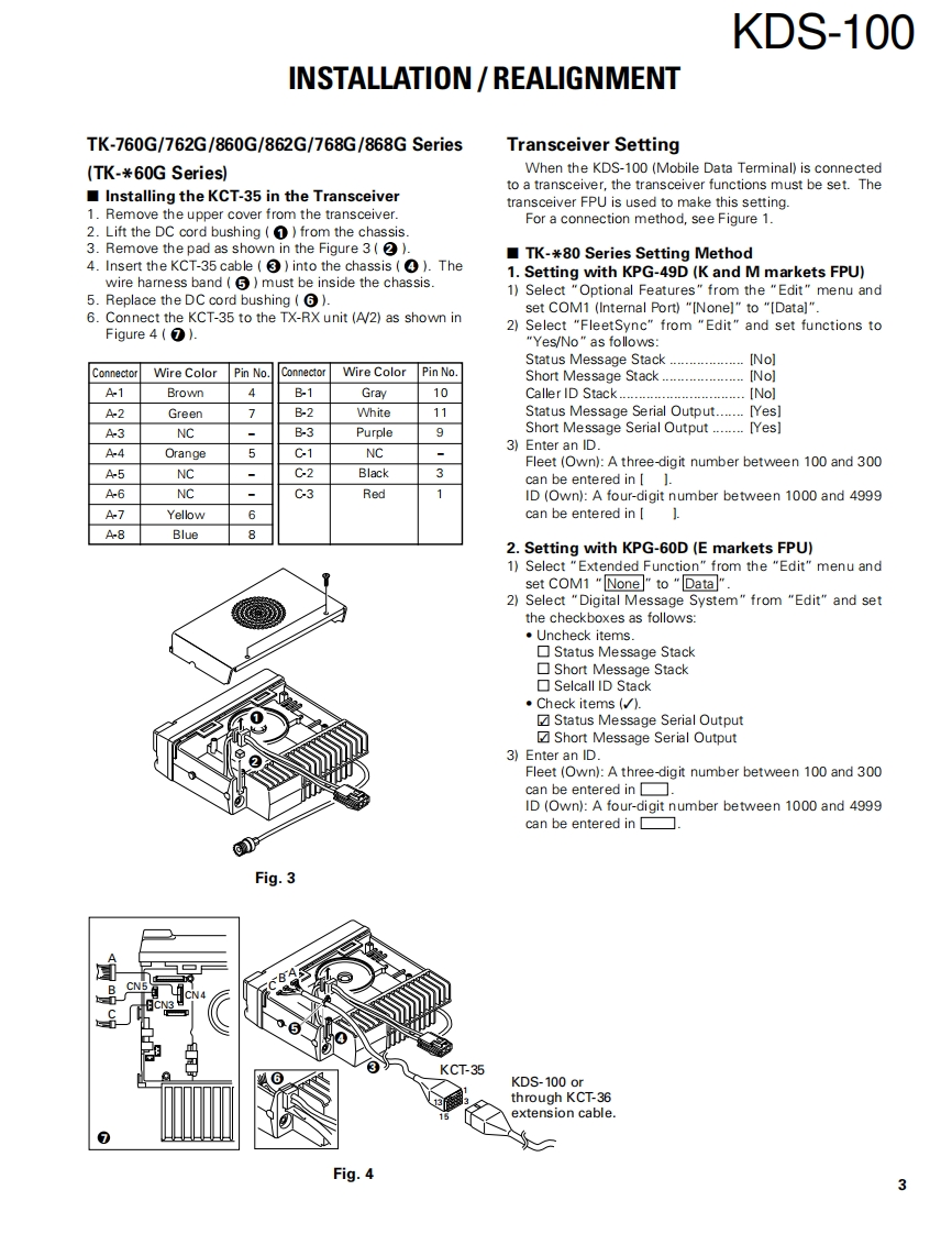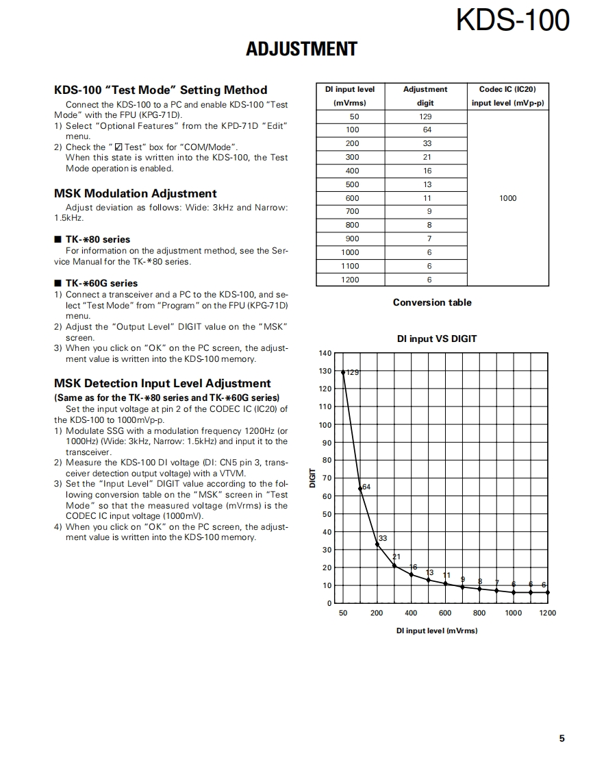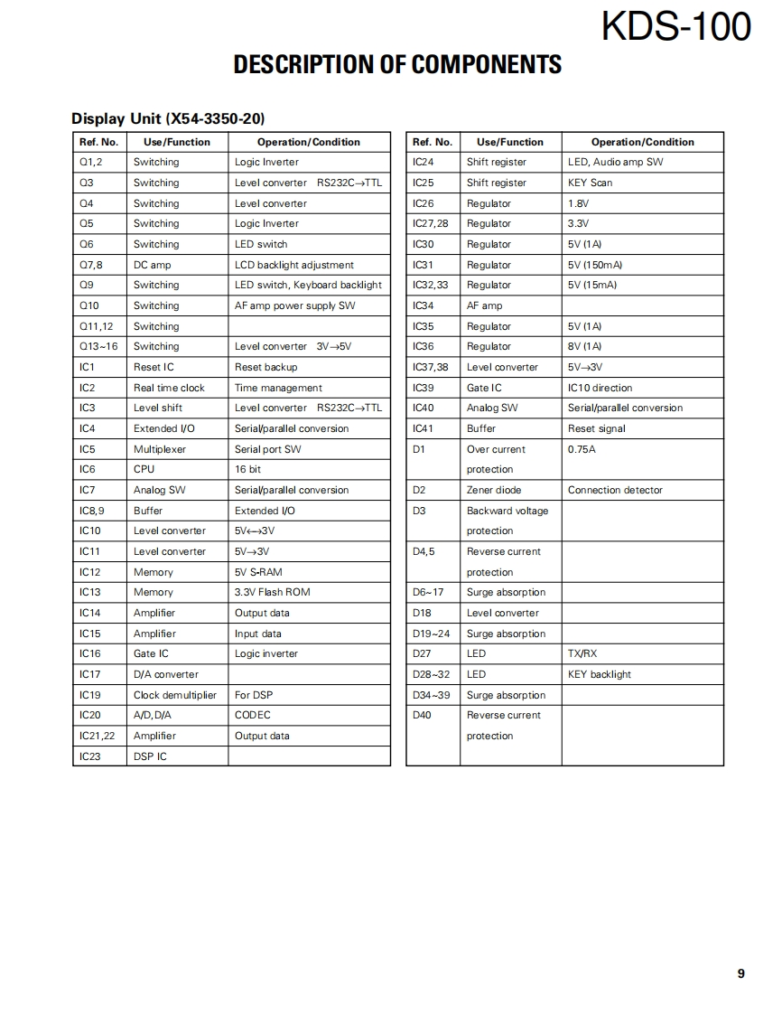 MOBILE DATA TERMINALKDS-100KENWOODSERVICE MANUAL2001-8 PRINTED IN JAPANB51-8591-00(N)1411Panel assyLCD assyKey top(A62-0979-03)(B38-0856-05)(K29-9135-02)KENWOODKENWOODMobile Data Terminal KDS-100SEL53Bracket(J29-0689-03)CONTENTSOPERATING FEATURES2PACKING16INSTALLATION...2PC BOARD VIEWSREALIGNMENT..…3DISPLAY UNIT (X54-3350-20)...........17ADJUSTMENT ..............*5SCHEMATIC DIAGRAM..23CIRCUIT DESCRIPTION.6BLOCK DIAGRAM27DESCRIPTION OF COMPONENTS..........9LEVEL DIAGRAM.29SEMICONDUCTOR DATA................10TERMINAL FUNCTION...30PARTS LIST..............11SPECIFICATIONS..31EXPLODED VIEW...........15