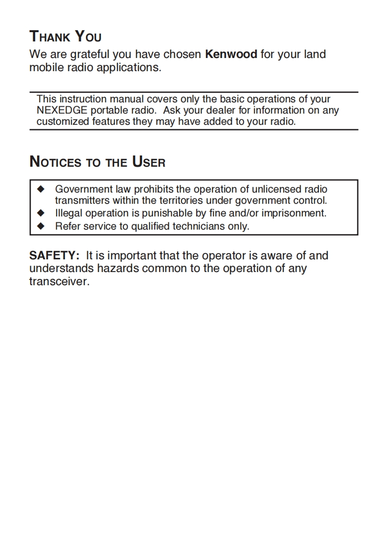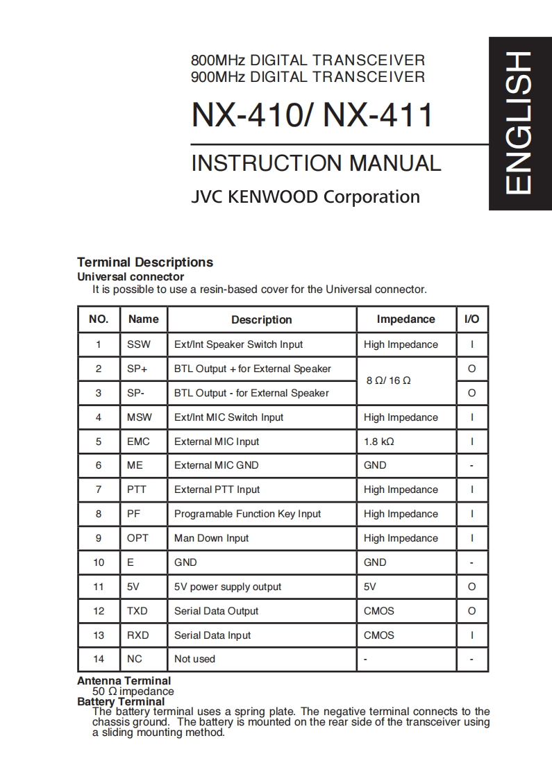 NEXEDGENX-410/NX-411KENWOOD8888#800MHz DIGITAL TRANSCEIVER900MHz DIGITAL TRANSCEIVERINSTRUCTION MANUALEMETTEUR-RECEPTEUR NUMERIQUE 800MHzEMETTEUR-RECEPTEUR NUMERIQUE 900MHzMODE D'EMPLOITRANSCEPTOR DIGITAL 800MHzTRANSCEPTOR DIGITAL 900MHzMANUAL DE INSTRUCCIONESJVC KENWOOD Corporation©B62-2364-00(K09080706050403020100
