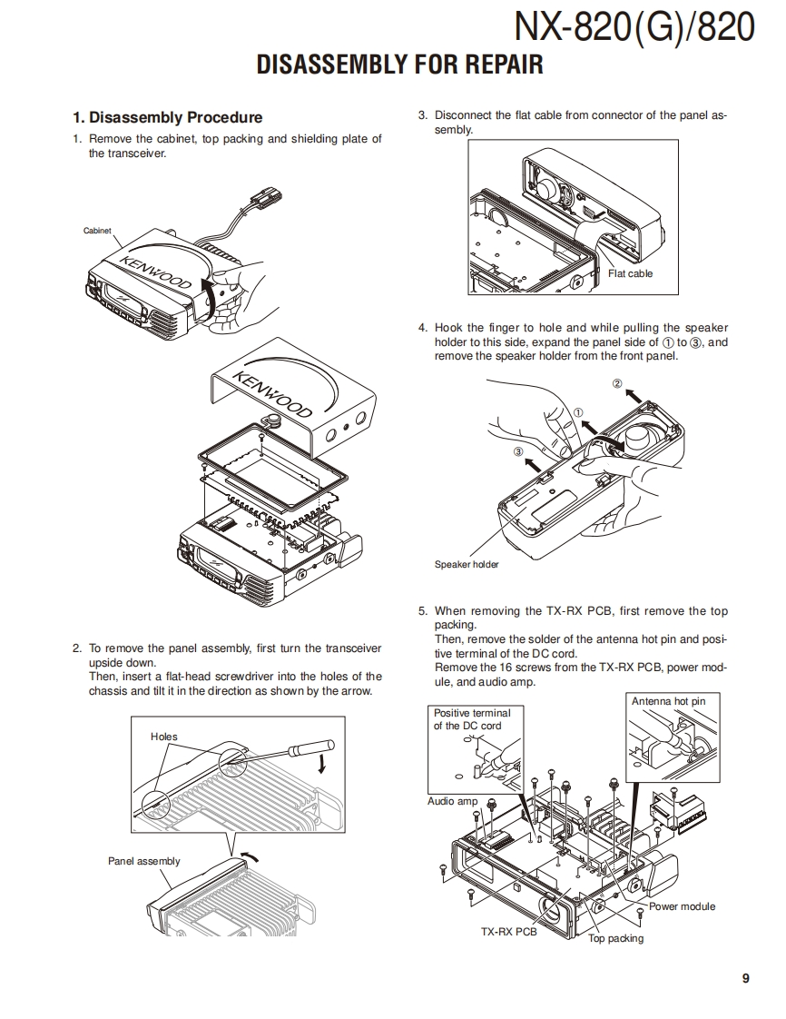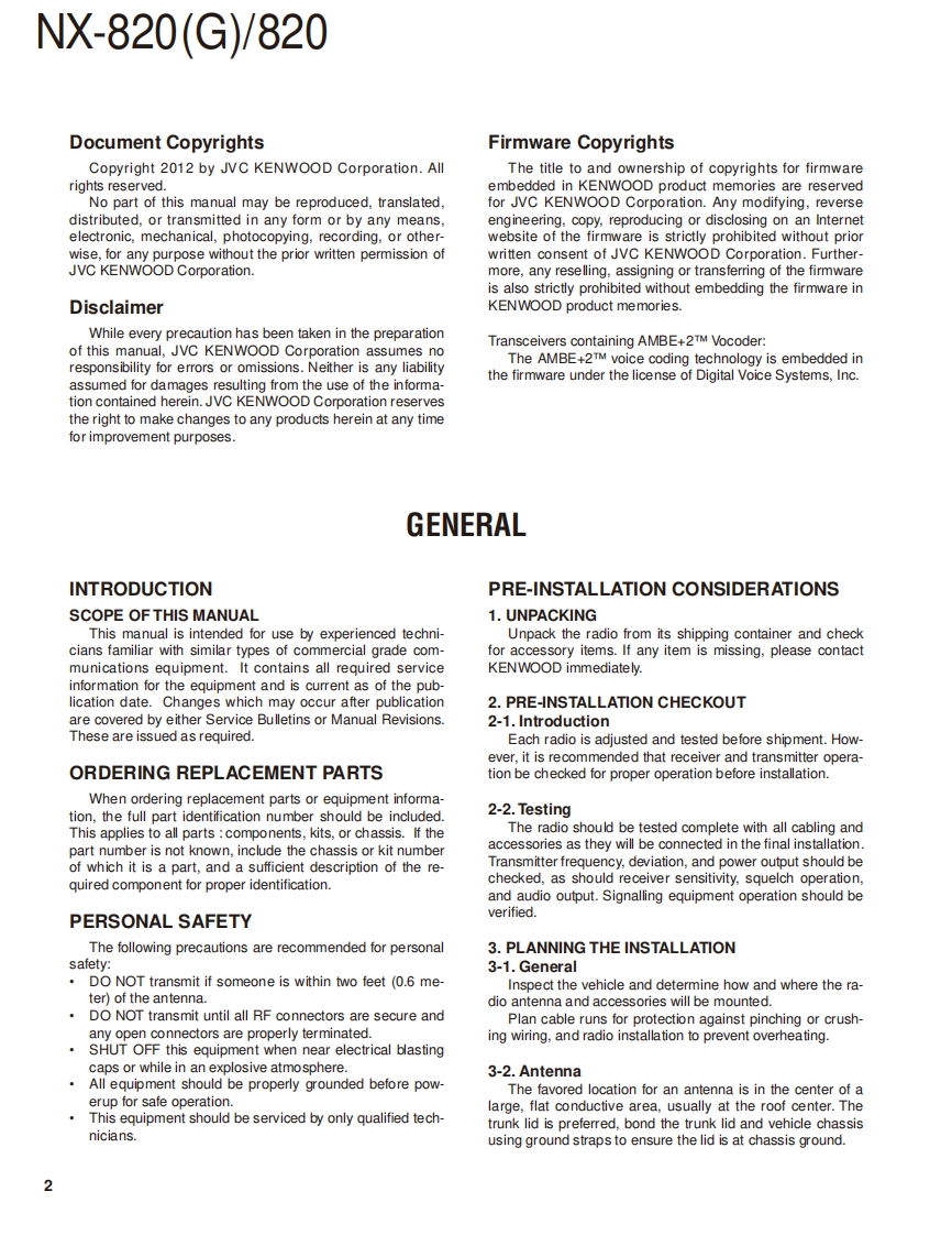 UHF DIGITAL TRANSCEIVERNX-820(G)/820KENWOODJVCKENWOOD CorporationSERVICE MANUAL2012-11 PRINTED IN JAPANB53-7044-00Y)80A0KBc>KENWOODModular jackKey topPanel assyBadge(E58-0535-05)(K29-9479-01)(A62-1200-03)(B43-1675-04)CONTENTSGENERAL2TERMINAL FUNCTION.56SYSTEM SET-UP...........4PC BOARDREALIGNMENTDISPLAY UNIT (X54-3830-10)..............60INSTALLATION..7TX-RX UNIT(X57-8240-1X).....62DISASSEMBLY FOR REPAIR9INTERCONNECTION DIAGRAM.............66CIRCUIT DESCRIPTION...............11SCHEMATIC DIAGRAM .........................67COMPONENTS DESCRIPTION....7BLOCK DIAGRAM..78PARTS LIST19LEVEL DIAGRAM.8EXPLODED VIEW...............29OPTIONAL ACCESSORIESTROUBLE SHOOTING .....30KRA-40.82ADJUSTMENT........34SPECIFICATIONS........83LFThis product complies with the RoHS directive for the European market.This product uses Lead Free solder.