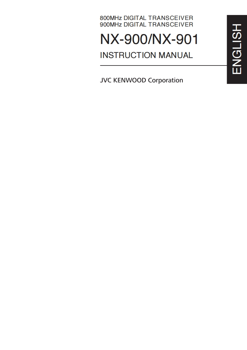 NEXEDGENX-900/NX-901800MHz DIGITAL TRANSCEIVER900MHz DIGITAL TRANSCEIVERINSTRUCTION MANUALEMETTEUR-RECEPTEUR NUMERIQUE 800MHzEMETTEUR-RECEPTEUR NUMERIQUE 900MHzMODE D'EMPLOITRANSCEPTOR DIGITAL 800MHzTRANSCEPTOR DIGITAL 900MHzMANUAL DE INSTRUCCIONESJVC KENWOOD Corporation©B62-2384-00(K009080706050403020100