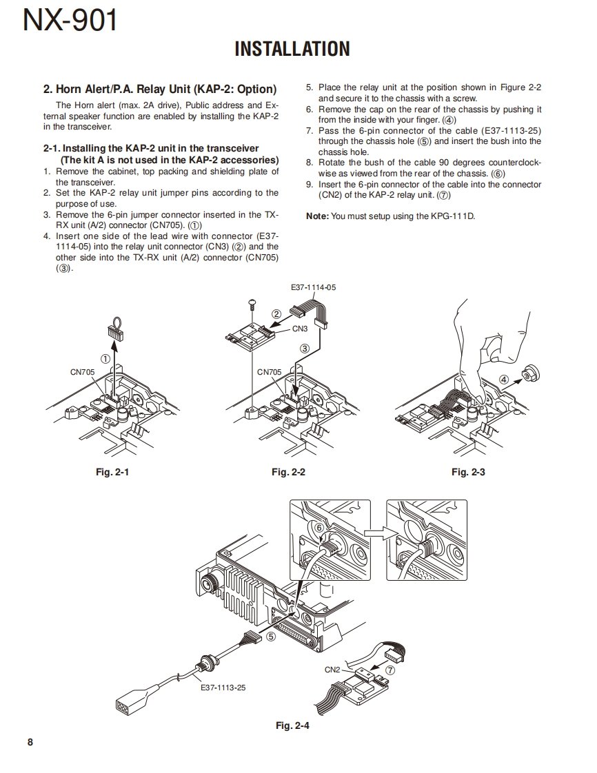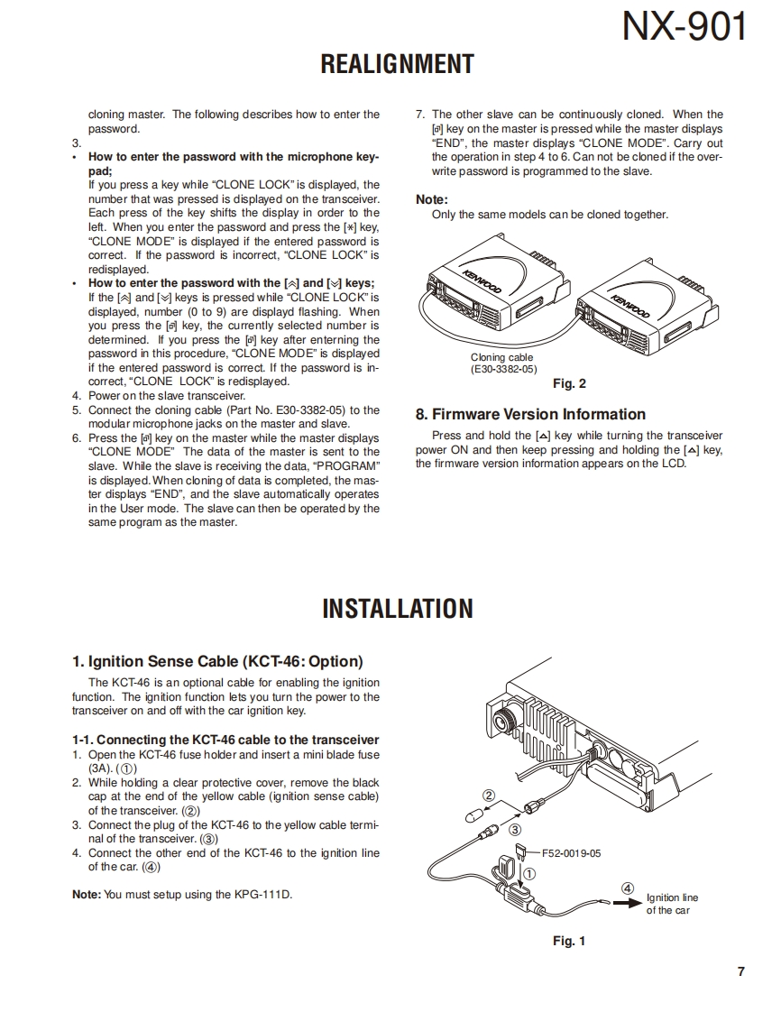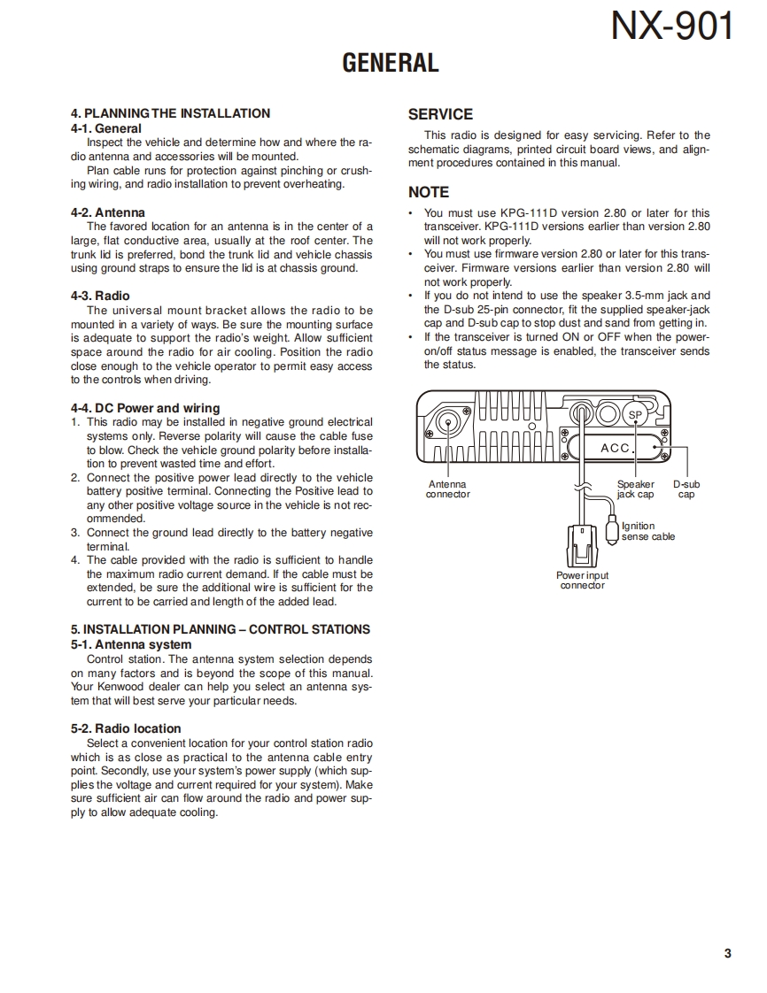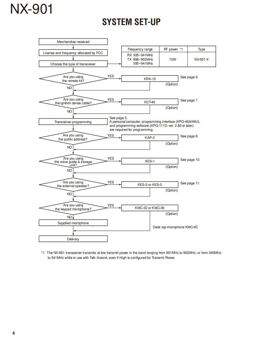 900MHz DIGITAL TRANSCEIVERNX-901KENWOODJVC KENWOOD CorporationSERVICE MANUAL2011-12 PRINTED IN JAPANB53-7003-00Y0330Metallic cabinetKey topPanel assy(A01-2194-11)K29-9401-03)(A62-1162-12)Modular jack(E58-0522-05KENWOODPacking (Phone jack)(G53-1616-03)@ACC」Packing (D-sub outer)(G53-1626-03)RF coaxial receptacle(N)(E04-0170-15DC cord (Pig tail)(E30-7520-25)CONTENTSGENERAL2ADJUSTMENT.4SYSTEM SET-UP.....4TERMINAL FUNCTION.6REALIGNMENT5PC BOARDINSTALLATION7DISPLAY UNIT(X54-3680-10).....72DISASSEMBLY FOR REPAIR..............14TX-RX UNIT(X57-8060-12)(AW2)..74CIRCUIT DESCRIPTION.........17TX-RX UNIT(X57-8060-12)(B/2)...78COMPONENTS DESCRIPTION...........23INTERCONNECTION DIAGRAM.............79PARTS LIST..26SCHEMATIC DIAGRAM80EXPLODED VIEW............39LEVEL DIAGRAM...96BLOCK DIAGRAM......98TROUBLE SHOOTING...41SPECIFICATIONS.......103LFThis product complies with the RoHS directive for the European market.This product uses Lead Free solder.
