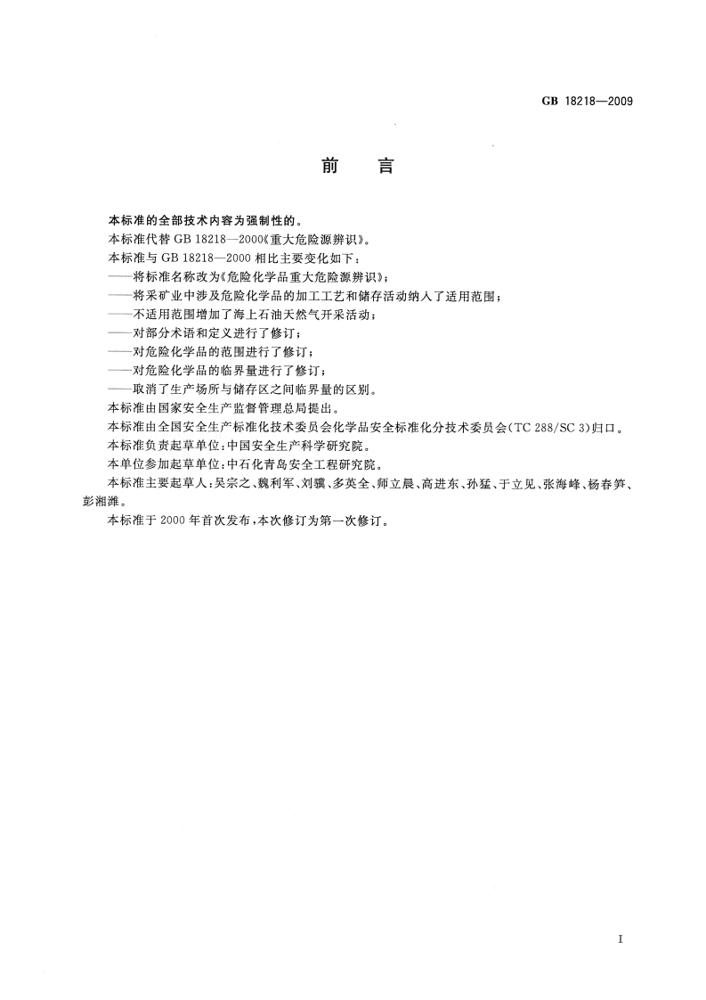 重大危险源辨识GB18218-2009348072@abc4个月前发布关注私信2.17MB8页041重大危险源辨识GB18218-2009此内容为付费资源,请付费后查看¥19¥23黄金会员免费钻石会员免费立即购买您当前未登录!建议登陆后购买,可保存购买订单付费资源 第1页 / 共8页 第2页 / 共8页 试读已结束,还剩6页,您可下载完整版后进行离线阅读 THE END标准规范 文本预览 1CS13.300A80GB中华人民共和国国家标准GB18218-2009代替GB18218-2000危险化学品重大危险源辨识Identification of major hazard installations for dangerous chemicals2009-03-31发布2009-12-01实施中华人民共和国国家质量监督检验检疫总局发布数码防伪中国国家标准化管理委员会 查看更多 收起部分 喜欢就支持一下吧收藏