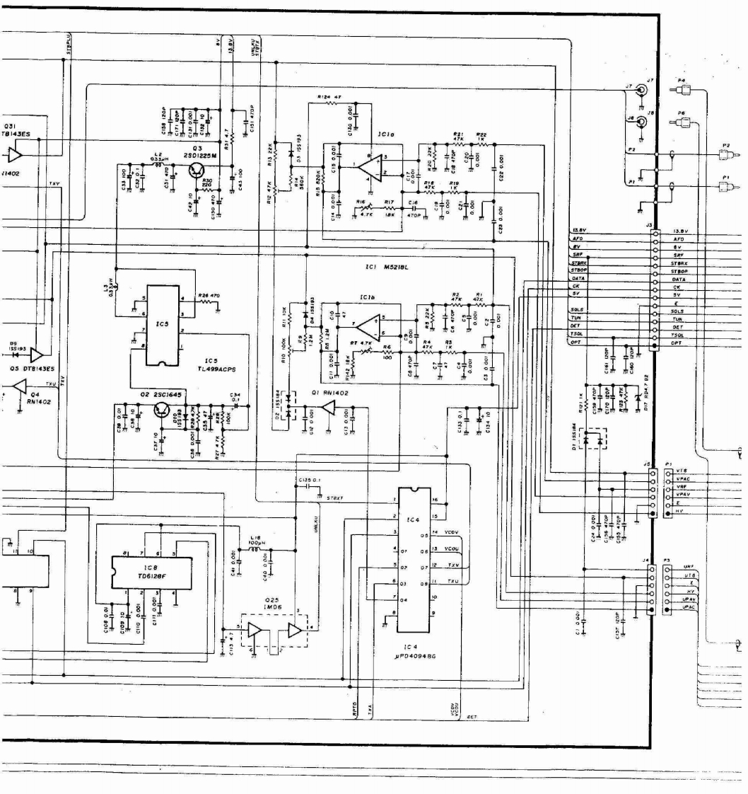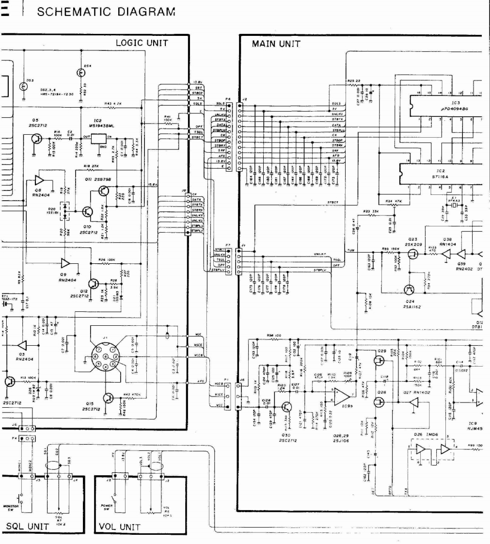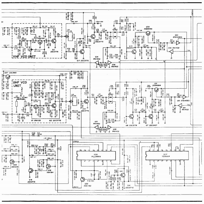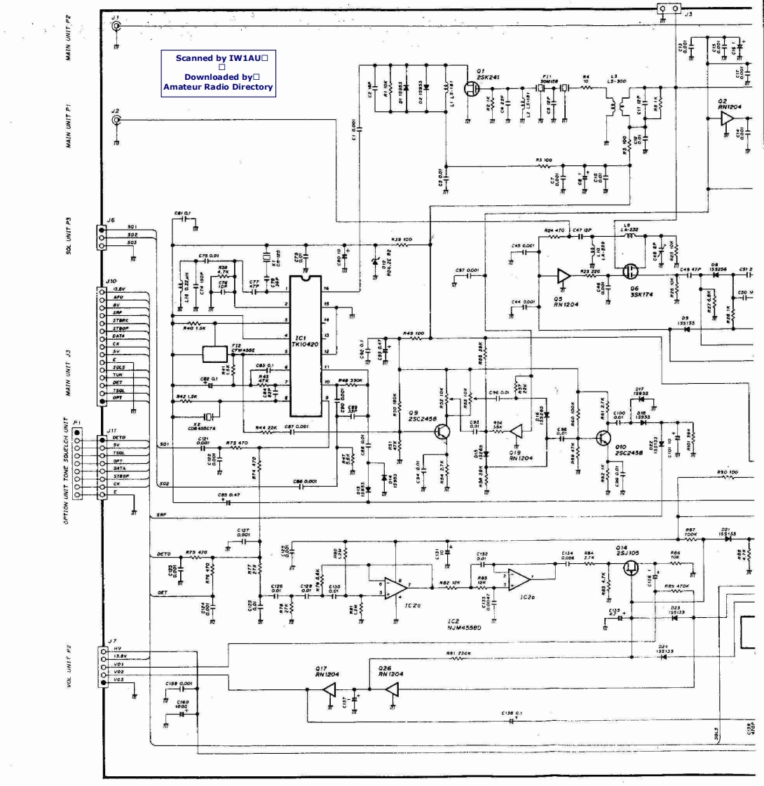 BLOCK DIAGRAMScanned by IW1AU▣Downloaded by▣PA UNITAmateur Radio DirectoryRXUNITANT430-440MH2r/AMe0B3SK121MIX21430-~440MHz144-440-450MHIU.S.A146MHzVARIABLEVARIABLEBPFBPFAMP0405.D6ANT SWD7 I5VSOHPF5V0x3LPFD5 MJ407LPFPAD71C2$C-1027Q43SK174A030.42M4X113RF DETAPC2ND MIX,OSC.IF AMPD615S990425A1345Q32sA1359FM DET,NOISE AMPHPFIC1TK10420455kHzIC2a NJM4558SOL144-146MHzCERAMIC140-150MHu.S.A)FILTERNOISE DETFI2 CFW4556D131s953LPFANT SWPAS-METERD142D2M407METER04x2rc1sC-1019DET0925C245日0102RF DETD315599APC8225A345Q12SA1359MAIN UNIT430m440MHzPRET/R SWD6 MA862Q72sC2407A」Q82SC3779ITRF559)144146MHzLOGIC UNITT/R SWCRIVERD8 MA862BUFF0132SC2407a10152SC3770LCDDS1 LCD-981tTX8DIM CTRLTX SW5服Y08.Q9RN2404APCQ26 IMD6002sC2712034DTB143ES0H25B799LAMPD2015187IC1b M5218LV-Tx8V-13.8U-TX8U-13.8RESETA344V-TX SW6322r08U-TX SWAPC016RW140204RW14024.194304S/RF METERAMP031DT日143EsD5DT日43EsMH2Q322sB909WD6256909MIC3 LA6393M本车对1C13M5218LSENSORCPUIC1PD75308LOW POWERCONTROL—TXBATTINITIAL01 RN402MATRIX一RXTXMIC UP/DN30v-DC AMPSHIFT REGISTERO UHF8846Q2328K209Q2425A162IC4uP04094VHFSW MATRIXCK-DATA-STBPTT01225C27120211s5193