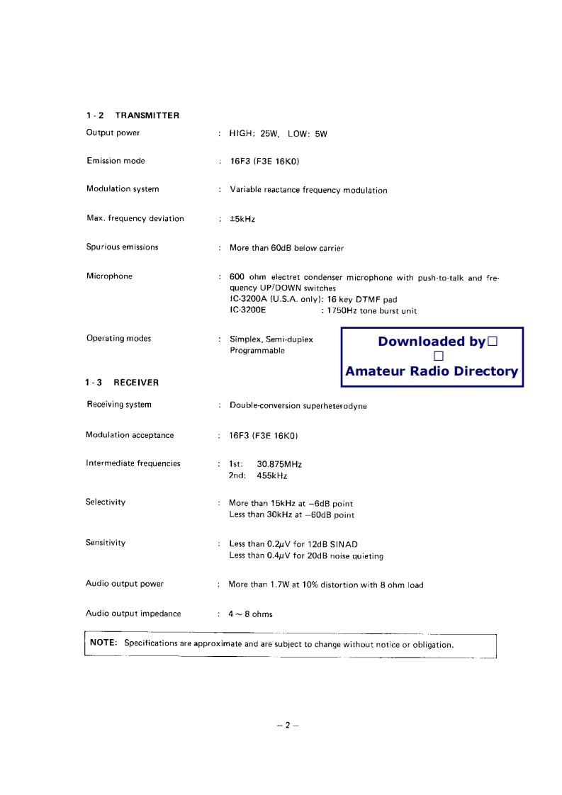ICOM艾可慕IC-3200A_E_user操作说明书手册找手册网31天前发布关注私信1.78MB34页046ICOM艾可慕IC-3200A_E_user操作说明书手册此内容为付费资源,请付费后查看¥19¥21黄金会员免费钻石会员免费登录购买付费资源 第1页 / 共34页 第2页 / 共34页 第3页 / 共34页 第4页 / 共34页 第5页 / 共34页 第6页 / 共34页 第7页 / 共34页 第8页 / 共34页 第9页 / 共34页 第10页 / 共34页 试读已结束,还剩24页,您可下载完整版后进行离线阅读 THE END艾可慕 文本预览 144/430MHz DUAL BANDIC-32O▣A/EFM TRANSCEIVERINSTRUCTION MANUALDownloaded by▣▣Amateur Radio DirectoryICOM 查看更多 收起部分 喜欢就支持一下吧收藏