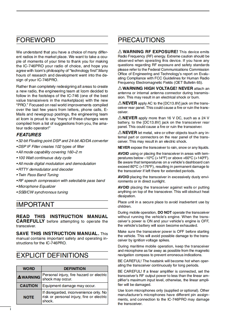 icOMINSTRUCTION MANUALHF/VHFALL MODE TRANSCEIVER1y.195.00IC-746PROooe-999-99This device complies with Part 15 of the FCC rules.Operation is sub-ject to the following two conditions:(1)This device may not causeharmful interfe rence,and (2)this device must accept any inte rferencereceived,including interfere nce that may cause undesired operation.Downloaded by▣Amateur Radio Directory[▣www.hamdirectory.infoIcom Inc.