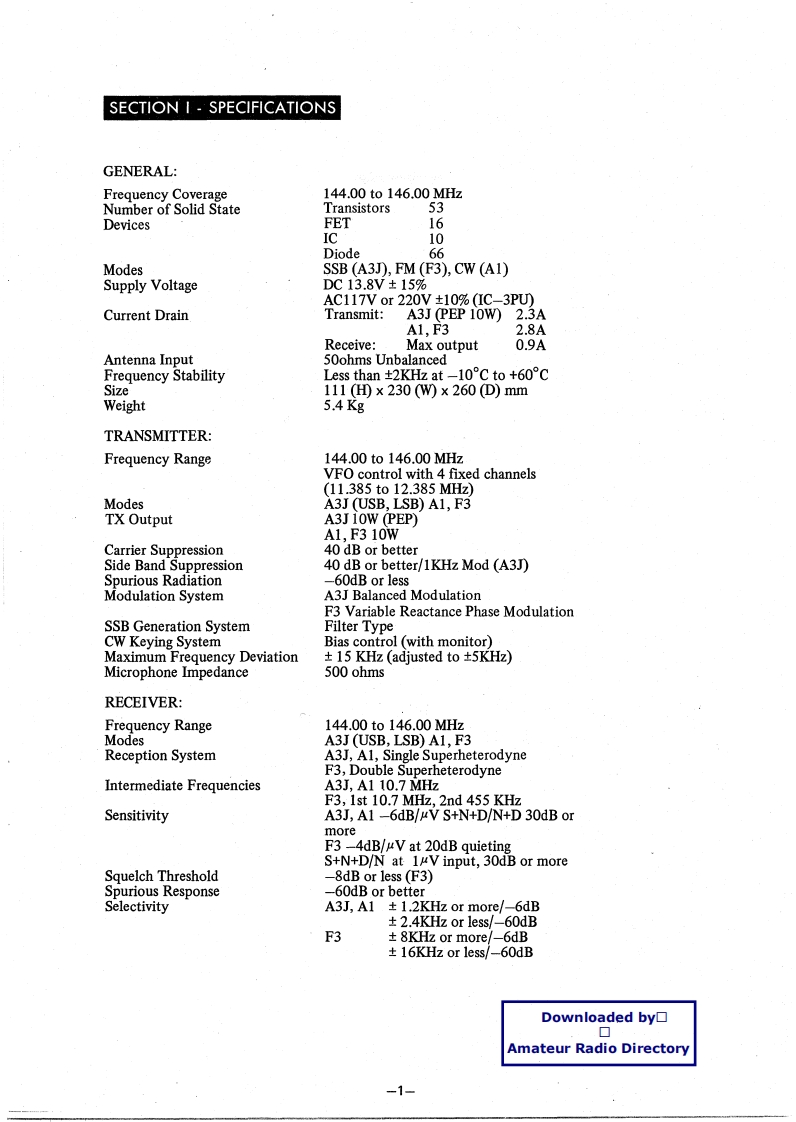 ICOM艾可慕IC-201_user操作说明书手册找手册网31天前发布关注私信4.36MB19页028ICOM艾可慕IC-201_user操作说明书手册此内容为付费资源,请付费后查看¥19¥21黄金会员免费钻石会员免费登录购买付费资源 第1页 / 共19页 第2页 / 共19页 第3页 / 共19页 第4页 / 共19页 第5页 / 共19页 第6页 / 共19页 第7页 / 共19页 第8页 / 共19页 第9页 / 共19页 第10页 / 共19页 试读已结束,还剩9页,您可下载完整版后进行离线阅读 THE END艾可慕 文本预览 I二-2▣2 METER BANDSSB FM CW TRANSCEIVERINSTRUCTIONMANUALDownloaded by□◇Amateur Radio DirectoryICOM 查看更多 收起部分 喜欢就支持一下吧收藏