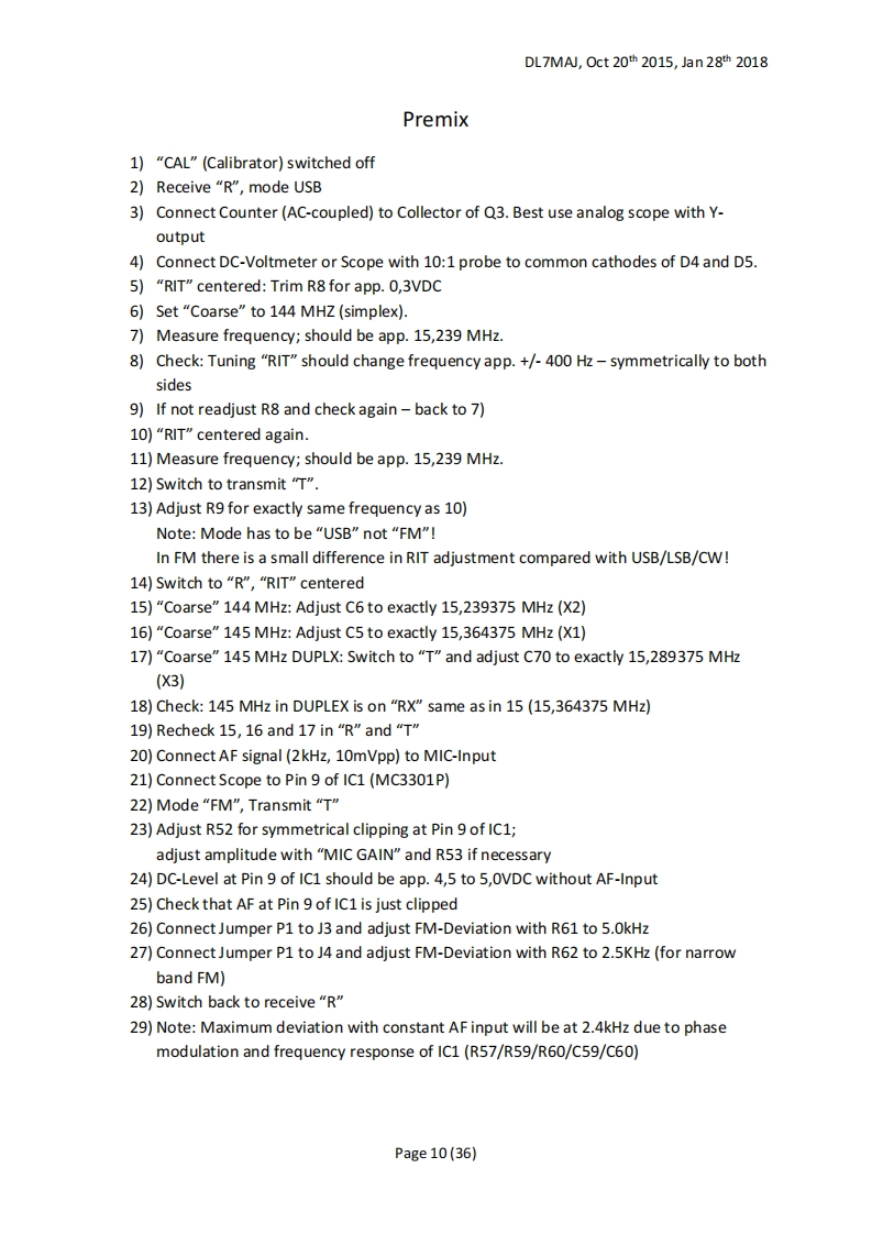 DL7MAJ,Oct 20th 2015,Jan 28th 2018ICOM IC-201 Allmode TransceiverXTAL144145DUPL中FUNCTIONCOURSEF·PwRR·T■二-2。NB OFFJL VOX OFr55B7USB LSBFMRITVOLMIC GAINDICO国MODERF GAINAlignment ProcedurePlease note:This procedure is reengineered by myself and may be not in accordance withthe original procedure from the manufacturer!So I can't accept any claims from anybody in case of injuries,problems,damages and losses.Usage of this procedure is at own risk!Of course you may ask me or give hints for improvement.Page 1(36)