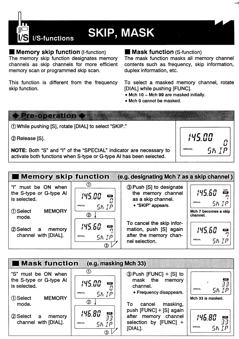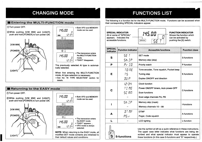 EASY and MULTI-FUNCTION modesICOM■EASY mode■MULT-FUNCTION modeThese transceivers are designed for basic sim-Has many advanced functions,such as replex operation,ensuring easy operation in thispeater operation.timer.memory skip/mask,mode.priority watch,DTMF memories,etc.In thismode.100 memory channels can be used forMULTI-FUNCTION OPERATION GUIDEThis mode covers all basic functions,such asvarious operations.transmitting.receiving,scanning.clock settings,LCD Fighting,etc.which are essential for dailyAs the multi-function mode has many acces-operations.sible functions,the Al (artificial intelligence)Tech Talkrestricts accessible functions to match youroperating needs.You can also restrict usedfunctons to speed-up access.If you select the growing type Al,only a fewfunctions can be accessed initially.Dependingon your operating experience.accessible funetions increase automaticaly.Aso.you canaccess all functions by selecting the all functionIC-ICtype Al.EASY MODESee the instruction manual for Easy mode operation.Icom IncMULTI-FUNCTION MODEIMPORTANTALL FUNCTION TYPE AI(A-type)This is a multi-function guide forTo use all functions described in(Default setting)RLLthe IC-2iA,IC-2iE,IC-4iA andthis Tech Talk,the "all functionIC-4iE.type Al"(A-type Al)is recom-mended.Functions described in this Tech.When first entering the MULTISELECTION TYPE AIGROWING TYPE AITalk cannot be used until enteringFUNCTION mode,the all function(S-type)the MULTI-FUNCTION mode.type Al may be selected.SEL(G-type)3utoSelect the desired Al type before function operation.A-5212S-T-1 1992 leom Ine Printed in Japan