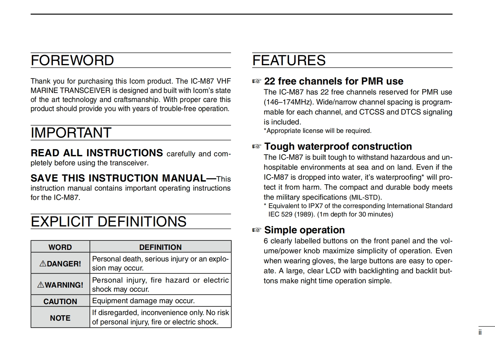 icom-ic-m87-user-guide操作说明书手册找手册网31天前发布关注私信2.12MB40页042icom-ic-m87-user-guide操作说明书手册此内容为付费资源,请付费后查看¥19¥21黄金会员免费钻石会员免费登录购买付费资源 第1页 / 共40页 第2页 / 共40页 第3页 / 共40页 第4页 / 共40页 第5页 / 共40页 第6页 / 共40页 第7页 / 共40页 第8页 / 共40页 第9页 / 共40页 第10页 / 共40页 试读已结束,还剩30页,您可下载完整版后进行离线阅读 THE END艾可慕 文本预览 INSTRUCTION MANUALVHF MARINE TRANSCEIVERC-M87WATER RESISTANTIC-M87DUALDIALSCNLOCK16H/LIcom Inc.COM 查看更多 收起部分 喜欢就支持一下吧收藏