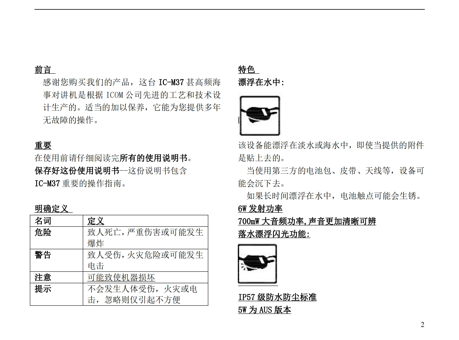 ICOMIC-M37简易中文用户操作手册指南找手册网31天前发布关注私信0.81MB27页024ICOMIC-M37简易中文用户操作手册指南此内容为付费资源,请付费后查看¥19¥21黄金会员免费钻石会员免费登录购买付费资源 第1页 / 共27页 第2页 / 共27页 第3页 / 共27页 第4页 / 共27页 第5页 / 共27页 第6页 / 共27页 第7页 / 共27页 第8页 / 共27页 第9页 / 共27页 第10页 / 共27页 试读已结束,还剩17页,您可下载完整版后进行离线阅读 THE END艾可慕 文本预览 COMINSTRUCTION MANUALVHF MARINE TRANSCEIVERIC-M37IC-M37ECOM智This devce comoles with Part 15 ofthe FCC rules.Operation is sublect tothe conditions that this device does notcause hamful Interterence.Icom Inc. 查看更多 收起部分 喜欢就支持一下吧收藏