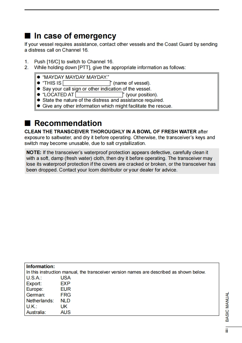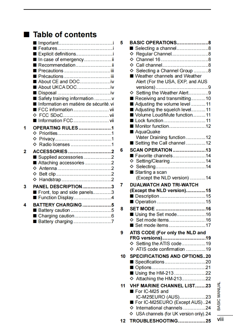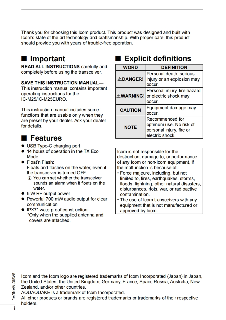 INSTRUCTION MANUALVHF MARINE TRANSCEIVERIC-M25IC-M25EUROEVOCOM1C-M2516%品This device complies with part 15 of the FCCRules.Operation is subject to the condition thatthis device does not cause harmful interference.▣回Icom Inc.American Communication SystemsDiscover the Power of Communicationshttp://www.ameradio.com