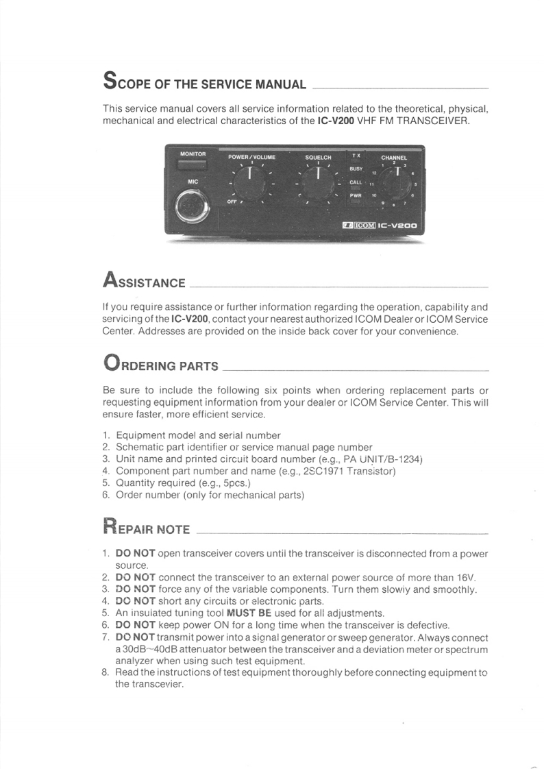 Icom_IC-V200_维修维护电器原理图手册找手册网31天前发布关注私信20.54MB45页040Icom_IC-V200_维修维护电器原理图手册此内容为付费资源,请付费后查看¥19¥21黄金会员免费钻石会员免费登录购买付费资源 第1页 / 共45页 第2页 / 共45页 第3页 / 共45页 第4页 / 共45页 第5页 / 共45页 第6页 / 共45页 第7页 / 共45页 第8页 / 共45页 第9页 / 共45页 第10页 / 共45页 试读已结束,还剩35页,您可下载完整版后进行离线阅读 THE END艾可慕 文本预览 ICOMSERVICEMANUAL%IC-V2▣回VHF FM TRANSCEIVERICOM INCORPORATED 查看更多 收起部分 喜欢就支持一下吧收藏