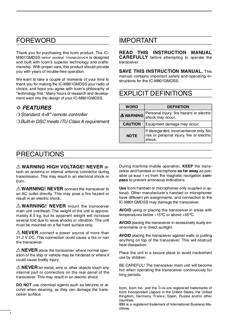 Icom_IC-M801GMDSS_使用说明书手册_2007找手册网31天前发布关注私信2.44MB80页031Icom_IC-M801GMDSS_使用说明书手册_2007此内容为付费资源,请付费后查看¥19¥21黄金会员免费钻石会员免费登录购买付费资源 第1页 / 共80页 第2页 / 共80页 第3页 / 共80页 第4页 / 共80页 第5页 / 共80页 第6页 / 共80页 第7页 / 共80页 第8页 / 共80页 第9页 / 共80页 第10页 / 共80页 试读已结束,还剩70页,您可下载完整版后进行离线阅读 THE END艾可慕 文本预览 COMINSTRUCTION MANUALMF/HF MARINE TRANSCEIVERIC-M801GMDSSICOMIcom Inc.Jun.2007for Rev.1.00 查看更多 收起部分 喜欢就支持一下吧收藏