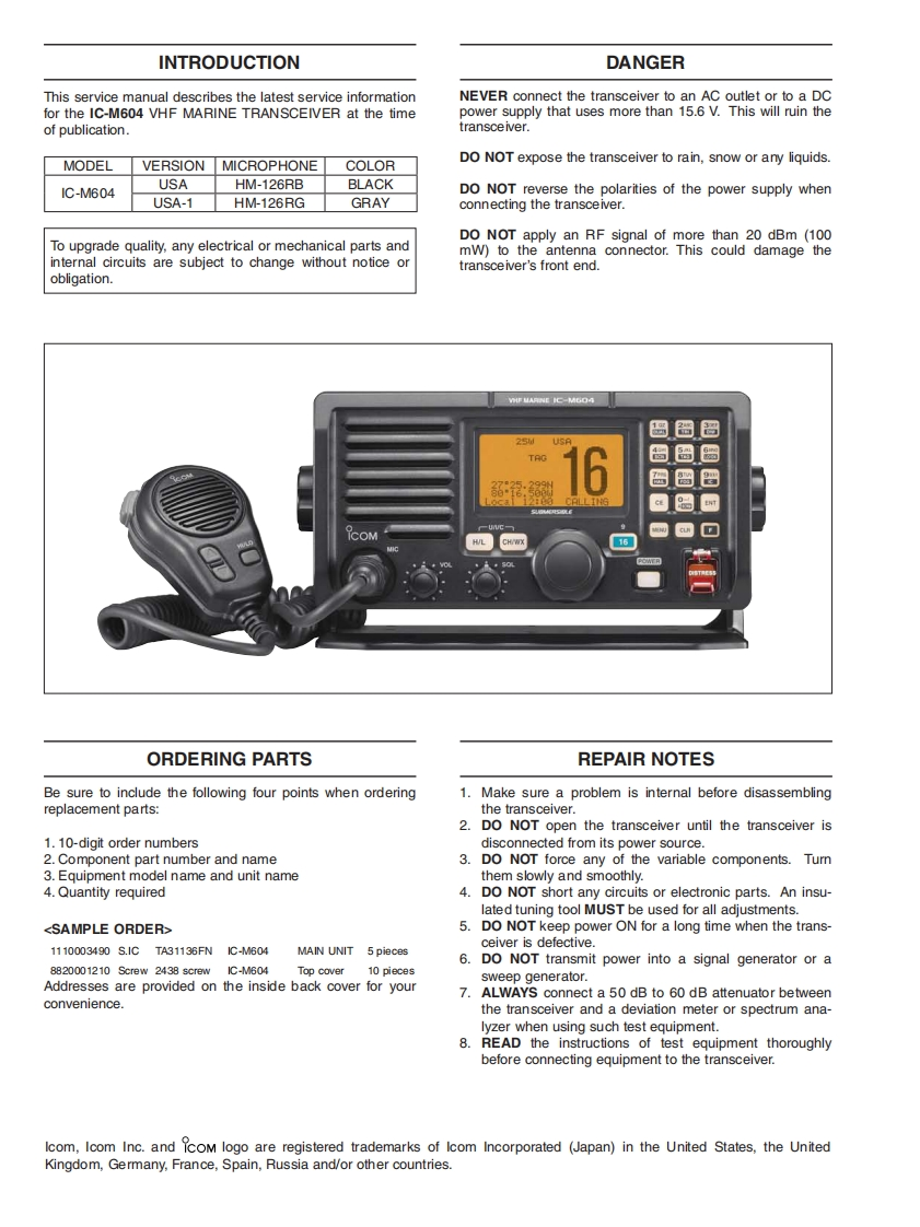 icom_icm604_维修手册电器原理图找手册网31天前发布关注私信4.81MB50页037icom_icm604_维修手册电器原理图此内容为付费资源,请付费后查看¥19¥21黄金会员免费钻石会员免费登录购买付费资源 第1页 / 共50页 第2页 / 共50页 第3页 / 共50页 第4页 / 共50页 第5页 / 共50页 第6页 / 共50页 第7页 / 共50页 第8页 / 共50页 第9页 / 共50页 第10页 / 共50页 试读已结束,还剩40页,您可下载完整版后进行离线阅读 THE END艾可慕 文本预览 COMSERVICEMANUALVHF MARINE TRANSCEVERIC-M604S-14306MZ-C1Aug.2006Icom Inc. 查看更多 收起部分 喜欢就支持一下吧收藏