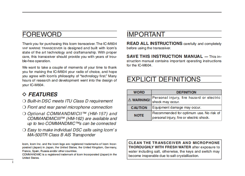 icom_icm604_使用说明书手册找手册网31天前发布关注私信5.24MB65页033icom_icm604_使用说明书手册此内容为付费资源,请付费后查看¥19¥21黄金会员免费钻石会员免费登录购买付费资源 第1页 / 共65页 第2页 / 共65页 第3页 / 共65页 第4页 / 共65页 第5页 / 共65页 第6页 / 共65页 第7页 / 共65页 第8页 / 共65页 第9页 / 共65页 第10页 / 共65页 试读已结束,还剩55页,您可下载完整版后进行离线阅读 THE END艾可慕 文本预览 ICOMINSTRUCTION MANUALVHF MARINE TRANSCEIVERIC-M604图国圆16品因固回画回Oa口Icom Inc. 查看更多 收起部分 喜欢就支持一下吧收藏