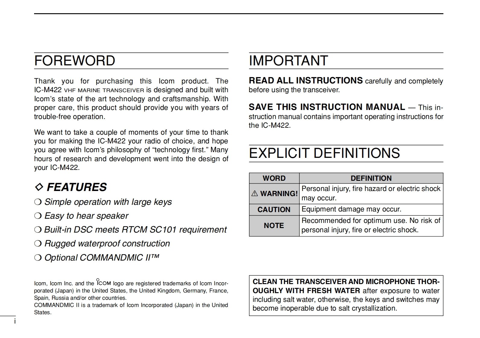 icom_icm422_使用说明书手册找手册网31天前发布关注私信1.57MB64页024icom_icm422_使用说明书手册此内容为付费资源,请付费后查看¥19¥21黄金会员免费钻石会员免费登录购买付费资源 第1页 / 共64页 第2页 / 共64页 第3页 / 共64页 第4页 / 共64页 第5页 / 共64页 第6页 / 共64页 第7页 / 共64页 第8页 / 共64页 第9页 / 共64页 第10页 / 共64页 试读已结束,还剩54页,您可下载完整版后进行离线阅读 THE END艾可慕 文本预览 COMINSTRUCTION MANUALVHF MARINE TRANSCEIVERC-M422VHF MARINE 1C-M422VOLBUSYTOMTAGUSARX)PWR PUSH-ONCOMDUALPOS16CH/WXDSCU/l/CTAGRXDISTRESSSCANPALO/DXIcom Inc. 查看更多 收起部分 喜欢就支持一下吧收藏