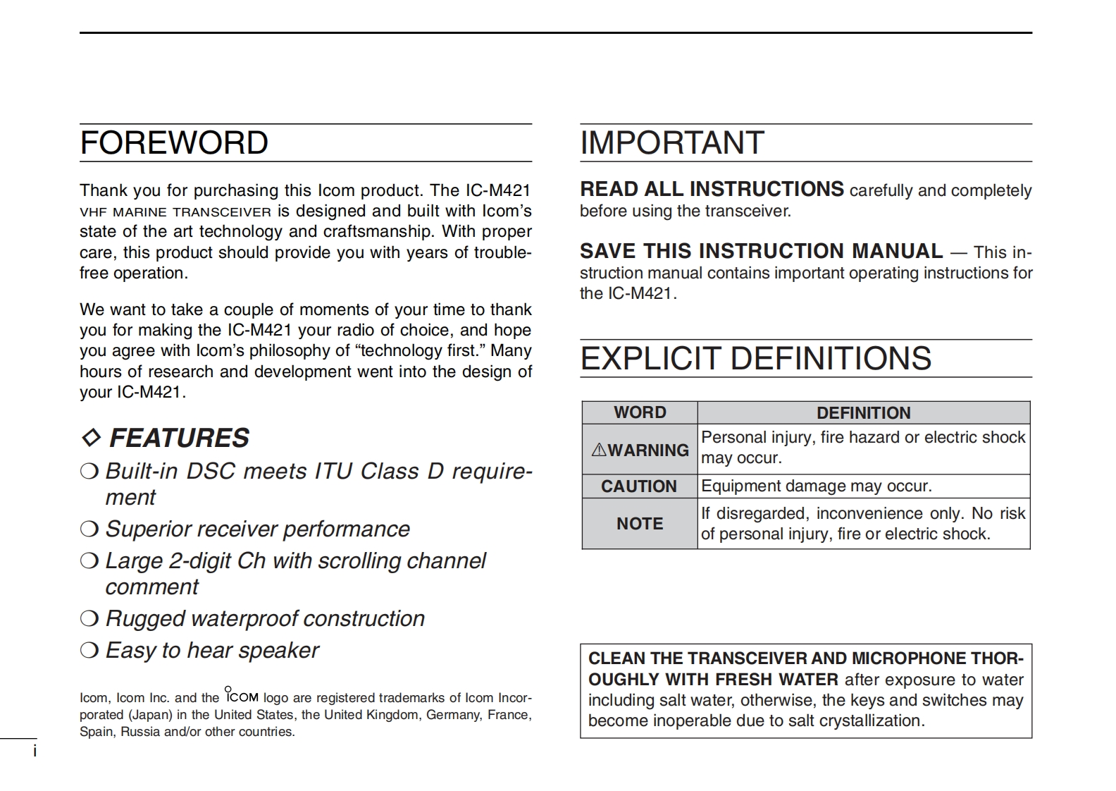 icom_icm421_使用说明书手册找手册网31天前发布关注私信1.21MB64页020icom_icm421_使用说明书手册此内容为付费资源,请付费后查看¥19¥21黄金会员免费钻石会员免费登录购买付费资源 第1页 / 共64页 第2页 / 共64页 第3页 / 共64页 第4页 / 共64页 第5页 / 共64页 第6页 / 共64页 第7页 / 共64页 第8页 / 共64页 第9页 / 共64页 第10页 / 共64页 试读已结束,还剩54页,您可下载完整版后进行离线阅读 THE END艾可慕 文本预览 COMINSTRUCTION MANUALVHF MARINE TRANSCEIVERIC-M421VHF MARINE1C-M421VOL16ESBY INTTETAG72:ICOM INCL0ca116:40COMDUAL16CHMENUGRPTAGSCANCLRENTIcom Inc. 查看更多 收起部分 喜欢就支持一下吧收藏