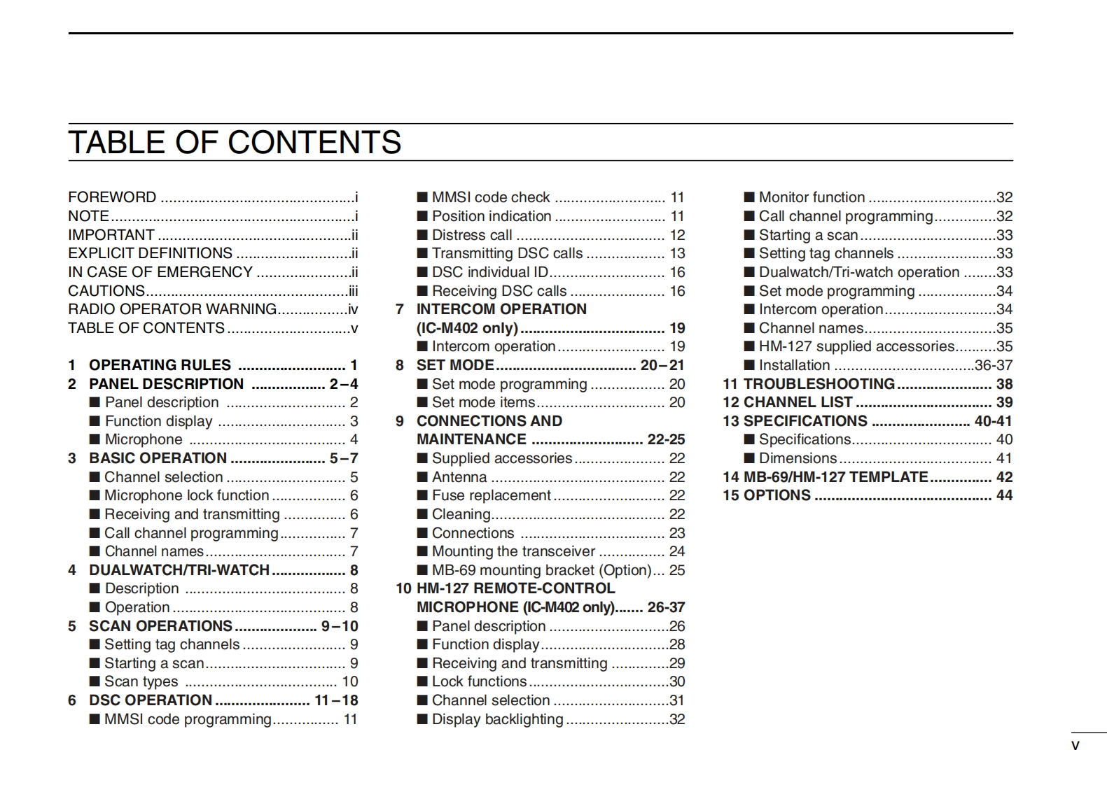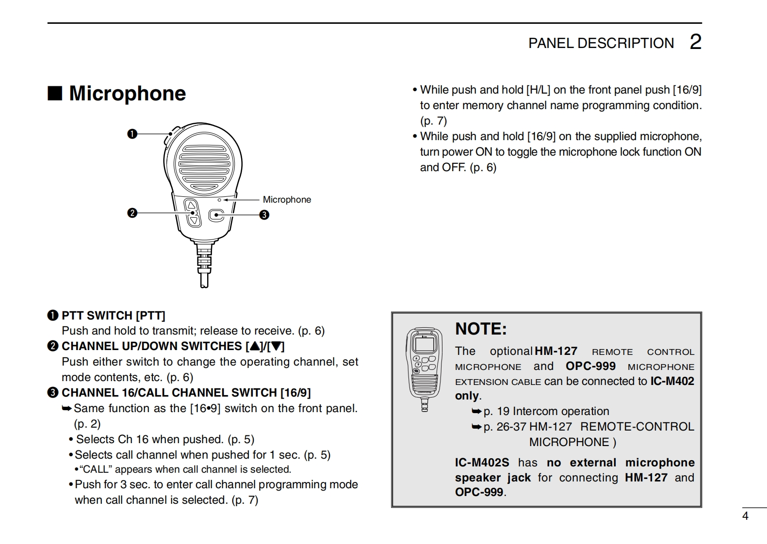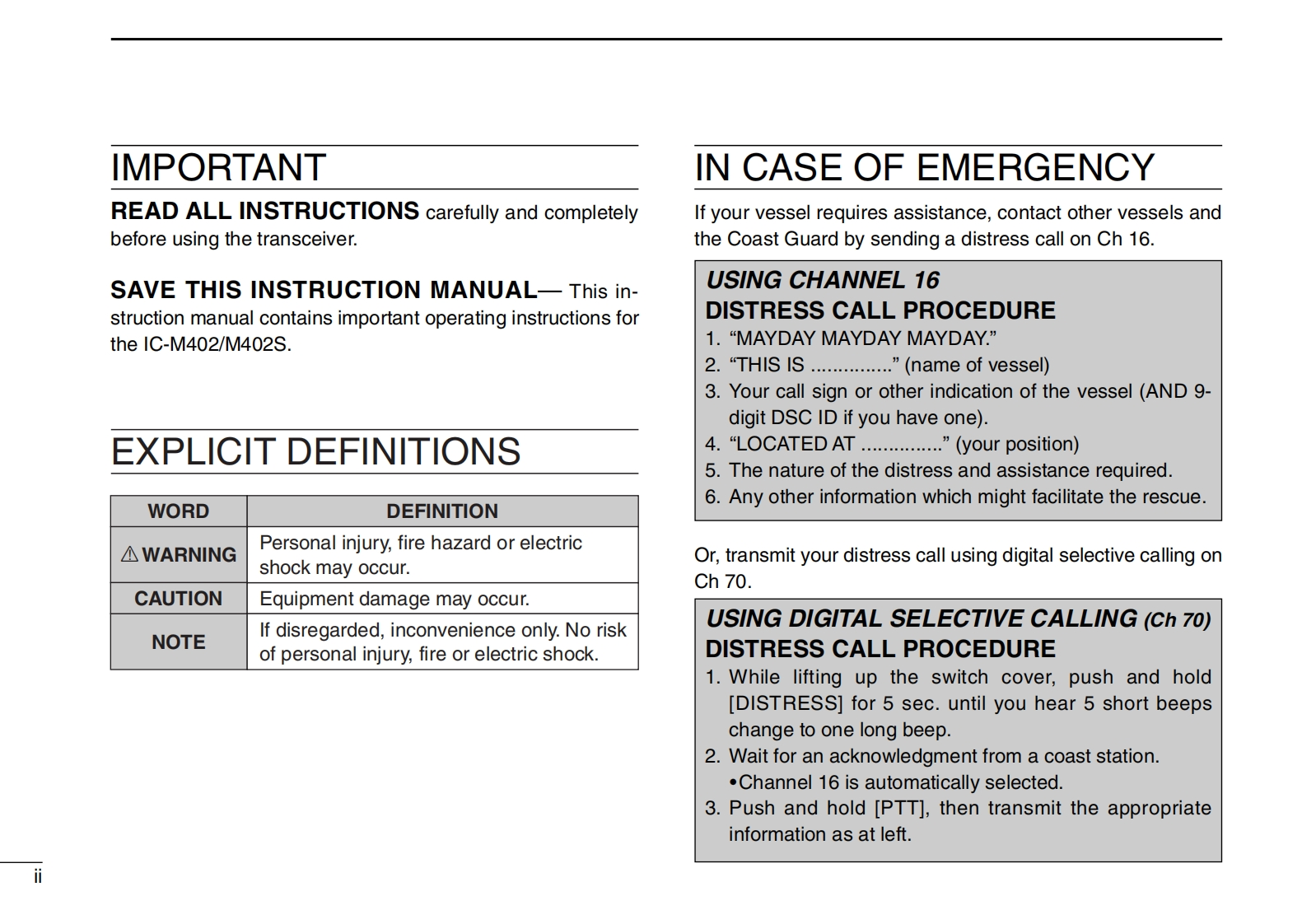 COMINSTRUCTION MANUALVHF MARINE TRANSCEIVER1C-M402(REMOTE-CONTROL MIC COMPATIBLE)VHF MARINE TRANSCEIVERCOMVOLBUSYIC-M402SLOWVHF MARINE1C-M402This device complies with Part 15 of the FCC rules.Operation is sub-DUALject to the following two conditions:(1)This device may not cause16CH/WXH/Lharmful interference,and(2)this device must accept any interferencereceived,including interference that may cause undesired operation.1C-M402Icom Inc.