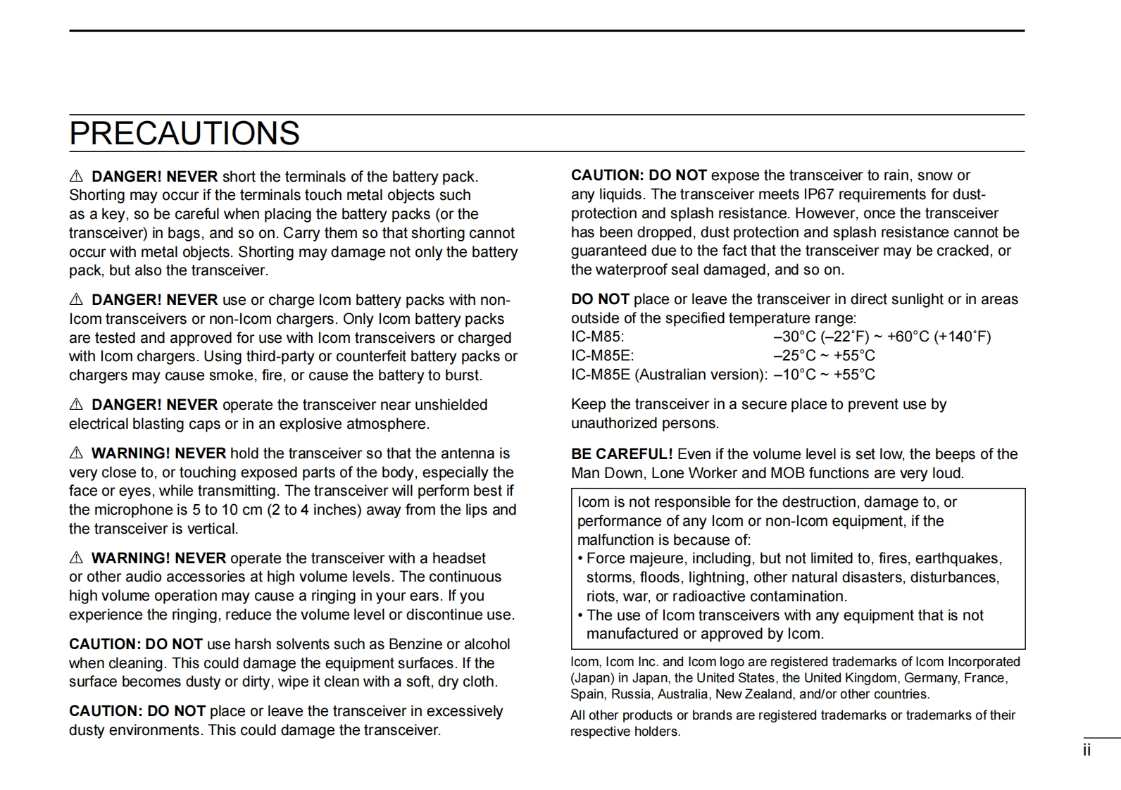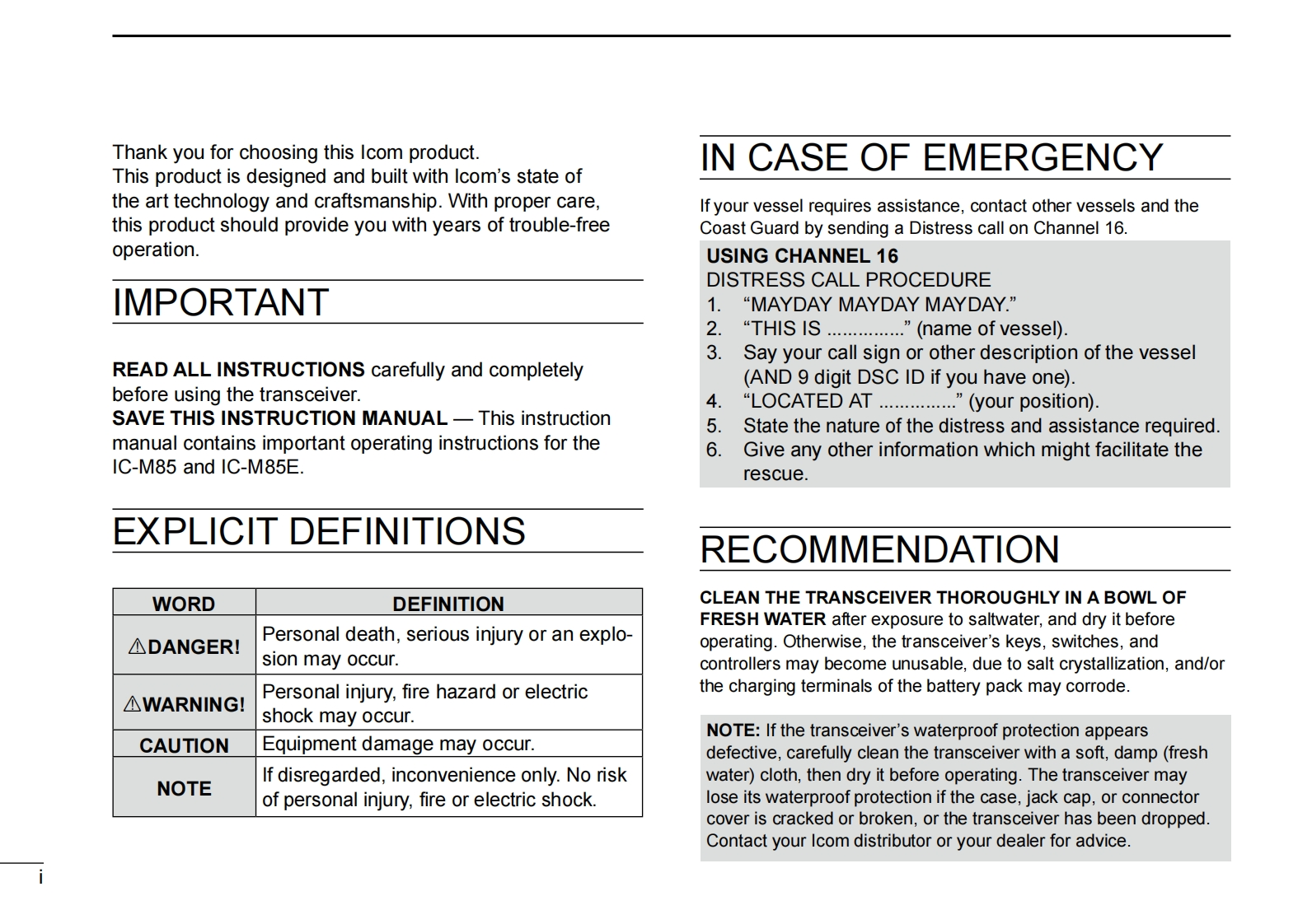 Icom_IC-M85E_manual操作说明书手册_en找手册网31天前发布关注私信2.49MB40页042Icom_IC-M85E_manual操作说明书手册_en此内容为付费资源,请付费后查看¥19¥21黄金会员免费钻石会员免费登录购买付费资源 第1页 / 共40页 第2页 / 共40页 第3页 / 共40页 第4页 / 共40页 第5页 / 共40页 第6页 / 共40页 第7页 / 共40页 第8页 / 共40页 第9页 / 共40页 第10页 / 共40页 试读已结束,还剩30页,您可下载完整版后进行离线阅读 THE END艾可慕 文本预览 INSTRUCTION MANUALVHF MARINE TRANSCEIVERSIE-M密ECOMThis device complies with Part 15 of the FCC6Rules.Operation is subject to the condition thatthis device does not cause harmful interference.图警世8IC-M85Icom Inc. 查看更多 收起部分 喜欢就支持一下吧收藏